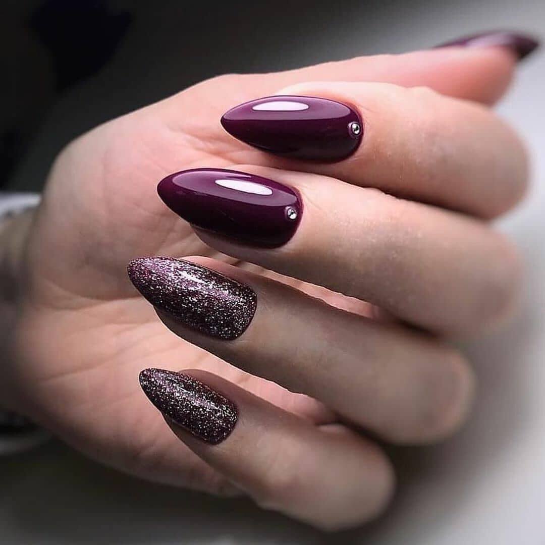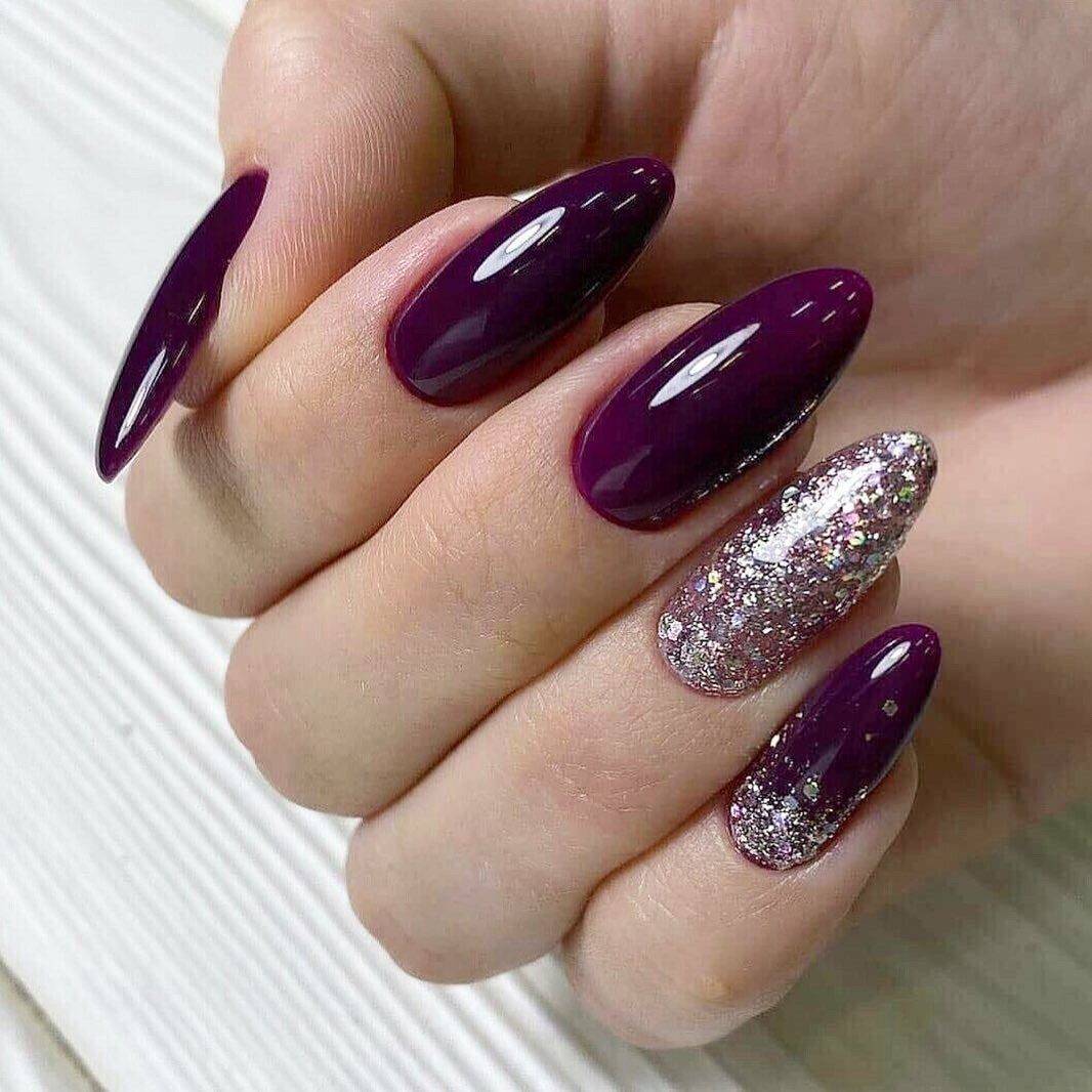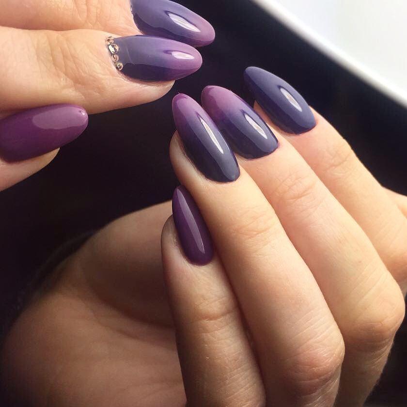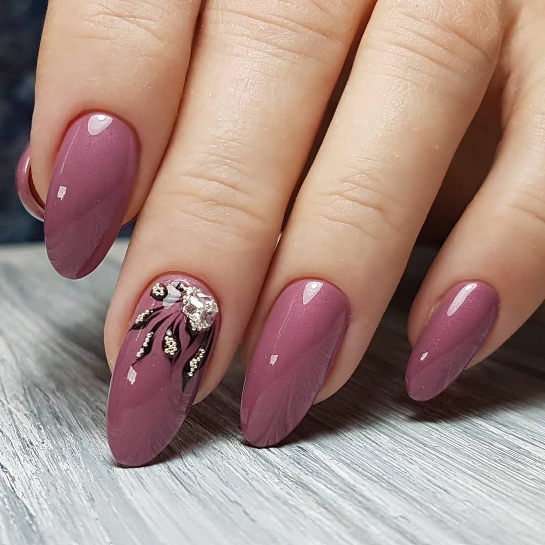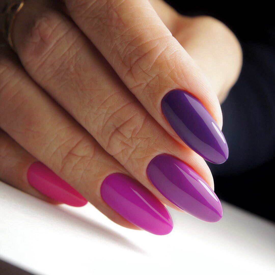 - фиолетовый — шикарный цвет для однотонного маникюра.