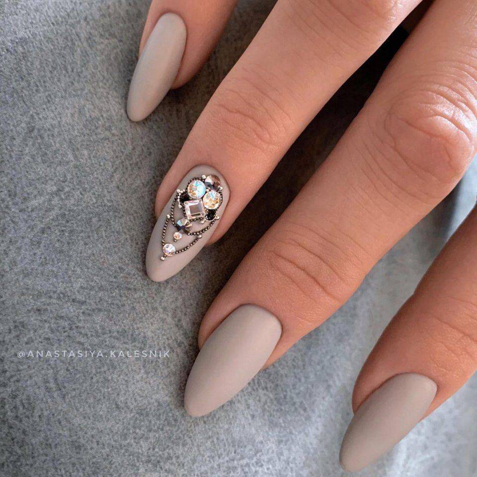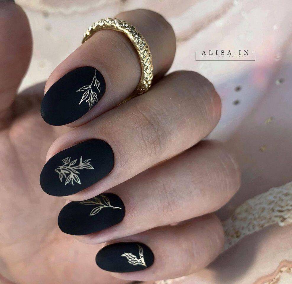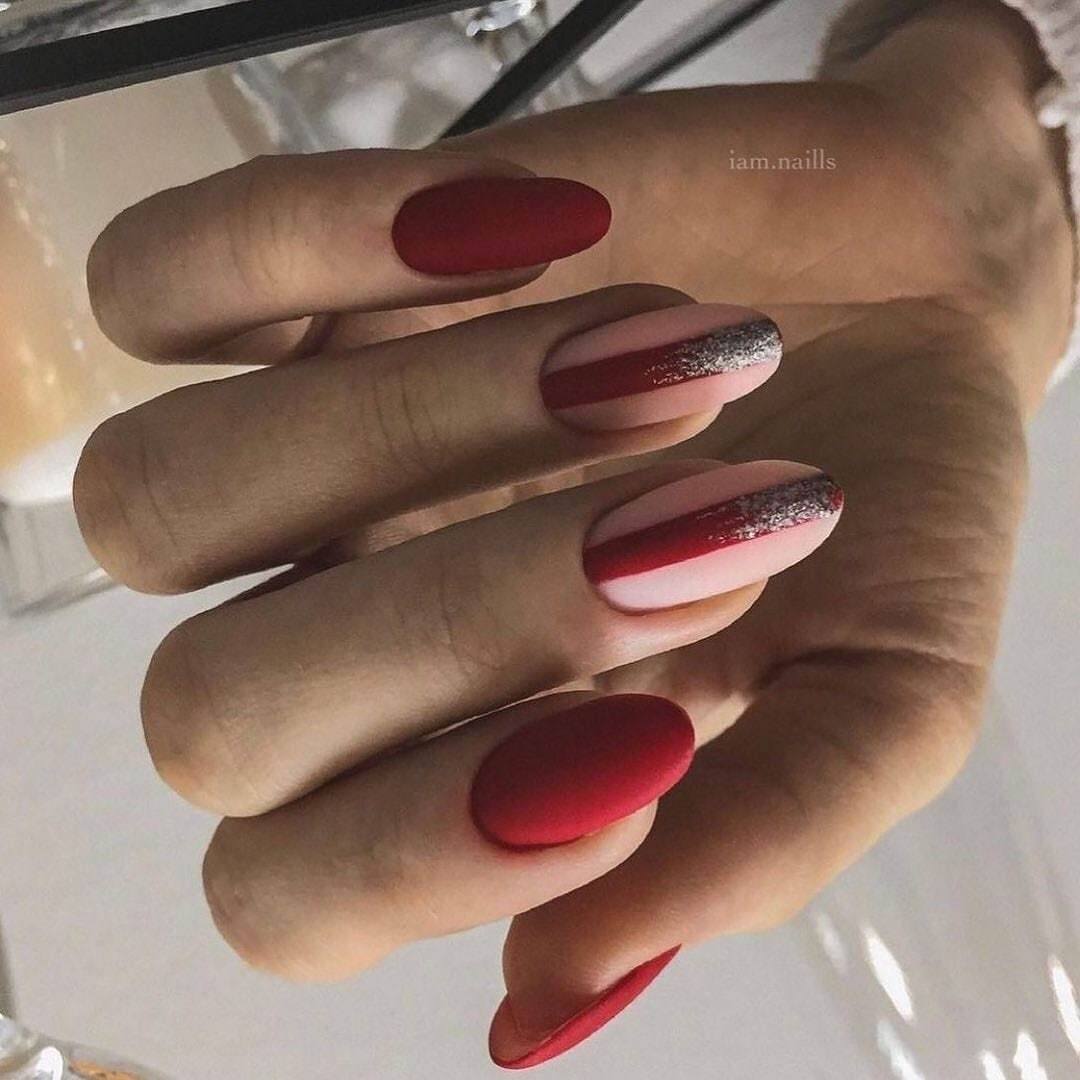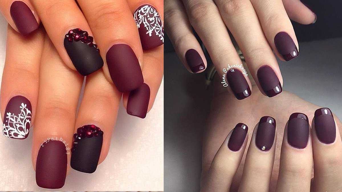 Матовый маникюр очень красиво передает глубину цвета лака и на нем шикарно смотрится любой дизайн. Для зимнего матового маникюра можно использовать темные насыщенные оттенки: черный, бордовый, фиолетовый смотрится очень эффектно, но при этом и нюдовые пастельные цвета тоже будут актуальными в 2020-2021 году.