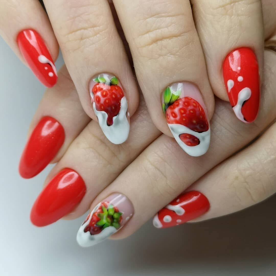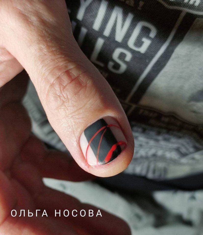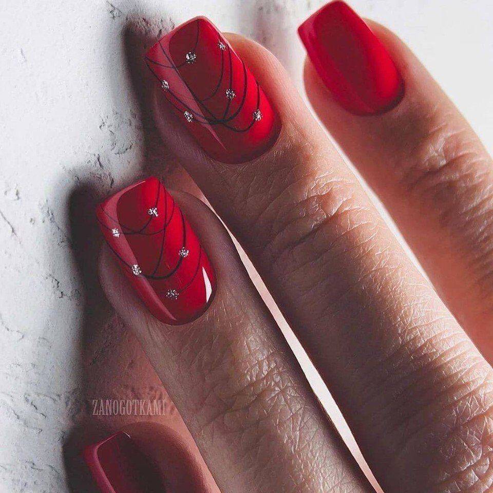 Красная палитра достаточно многогранна и прекрасно сочетается на ногтях с другими оттенками. К тому же всегда можно сгладить насыщенность основного тона при помощи рисунков. Это может быть стильная геометрия с чёткими линиями, острыми углами и блестящим дополнением, шикарные цветы, выполненные в одном из контрастных тонов, ажурные узоры, имитирующие улыбку френча и многие другие предложения. Не бойтесь насыщенности красного. При грамотной комбинации деталей маникюра даже такие ноготки будут смотреться очень нежно и женственно.