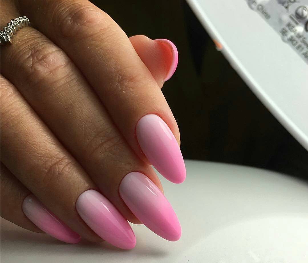 Седьмое место в модном весеннем nail-параде в этом году занимает благородный градиент. В тренде мягкие растяжки плавно переходящие из нежно-розового в нежно-голубой, из нежно персикового в ярко-розовый, из пастельно-серого в нежно-лимонный и так далее. Любые переходы в модной весенней цветовой гамме.