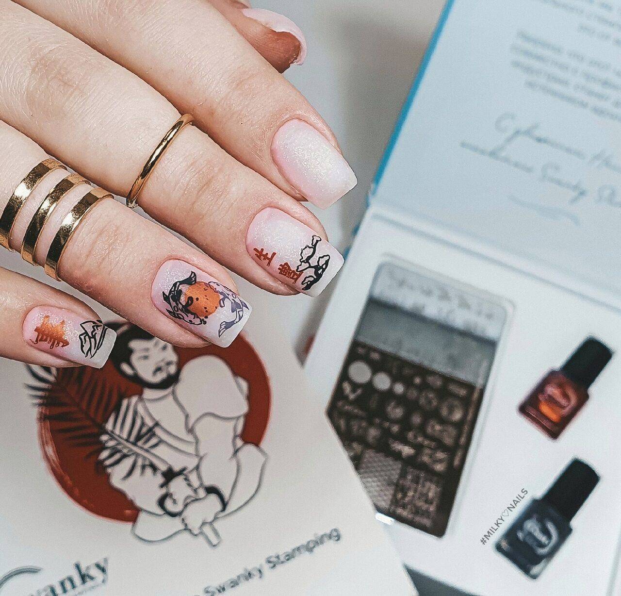 Ногтевой дизайн со стемпингом поддерживает и сохраняет тенденцию в направлении ногтевой моды сезона осень-зима 2021-2022 года. Матовая, нежная, спокойная текстура покрытия дополняется великолепными узорами в технике стемпинга. Такие ногти уместны в любых обстоятельствах.
