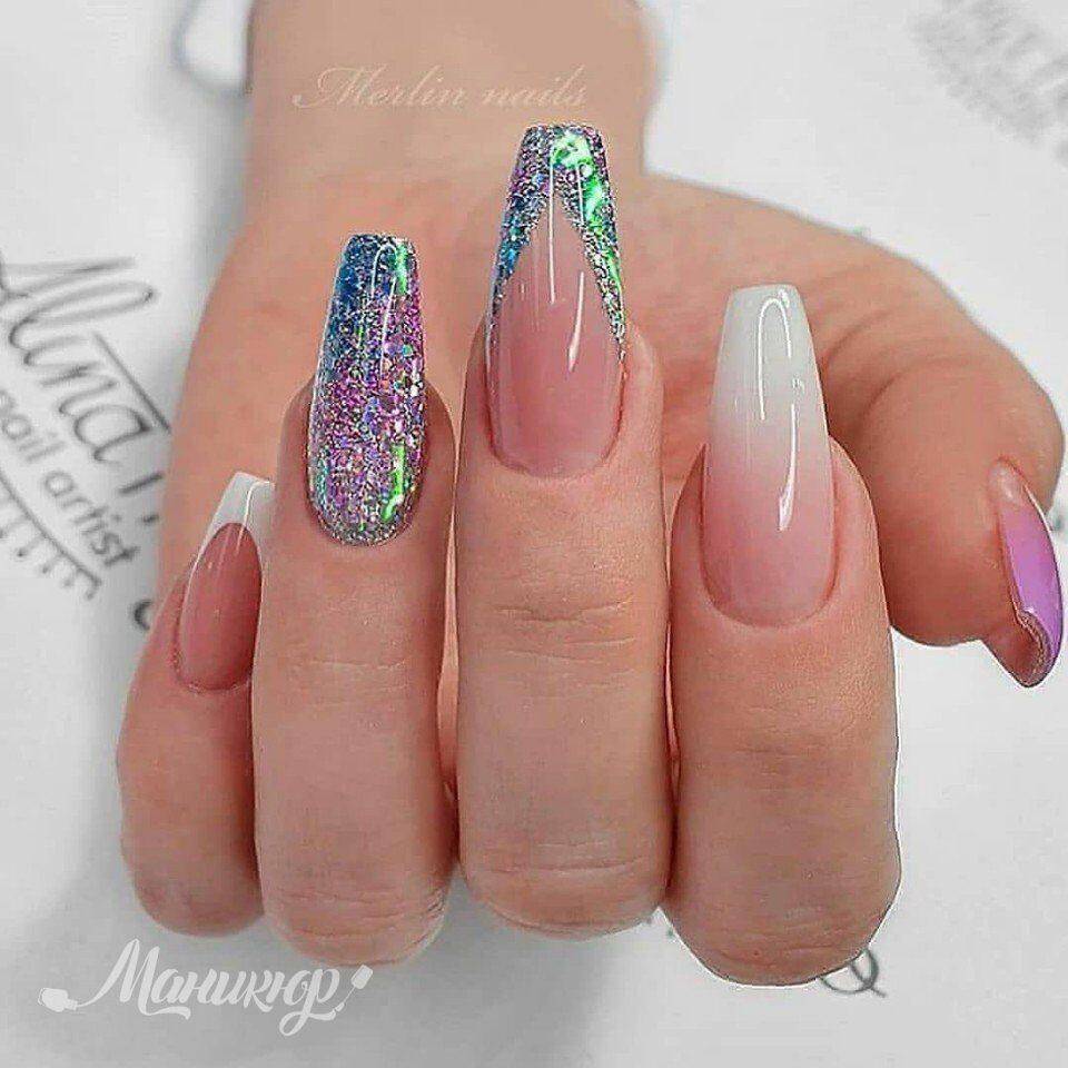 Есть очень много интересных идей зимнего дизайна маникюра с конфетти, самые трендовые идеи сезона 2020-2021 смотрите в нашей подборке: