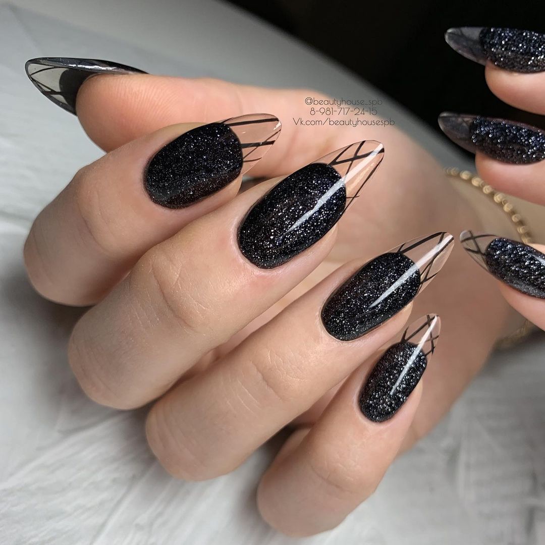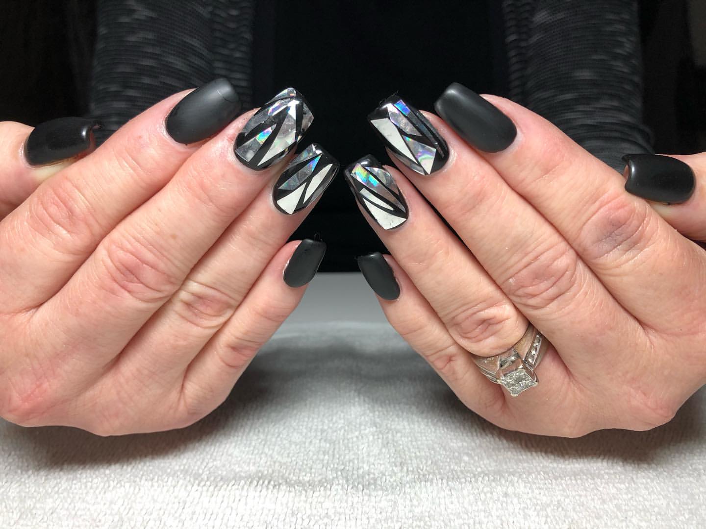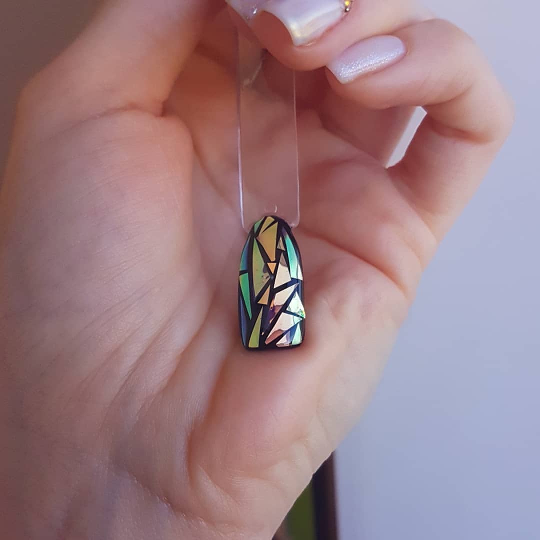 «Битое стекло» на черных ногтях