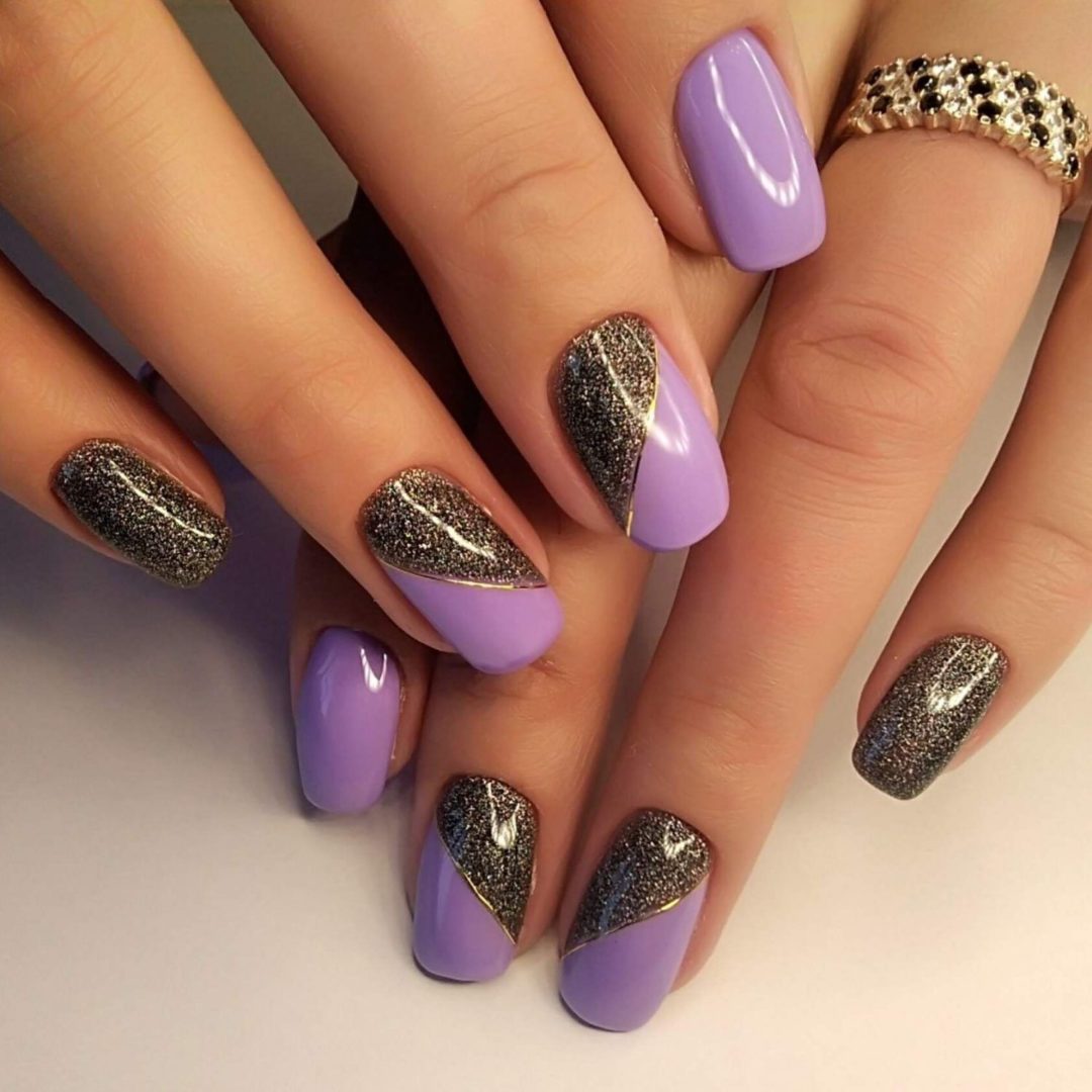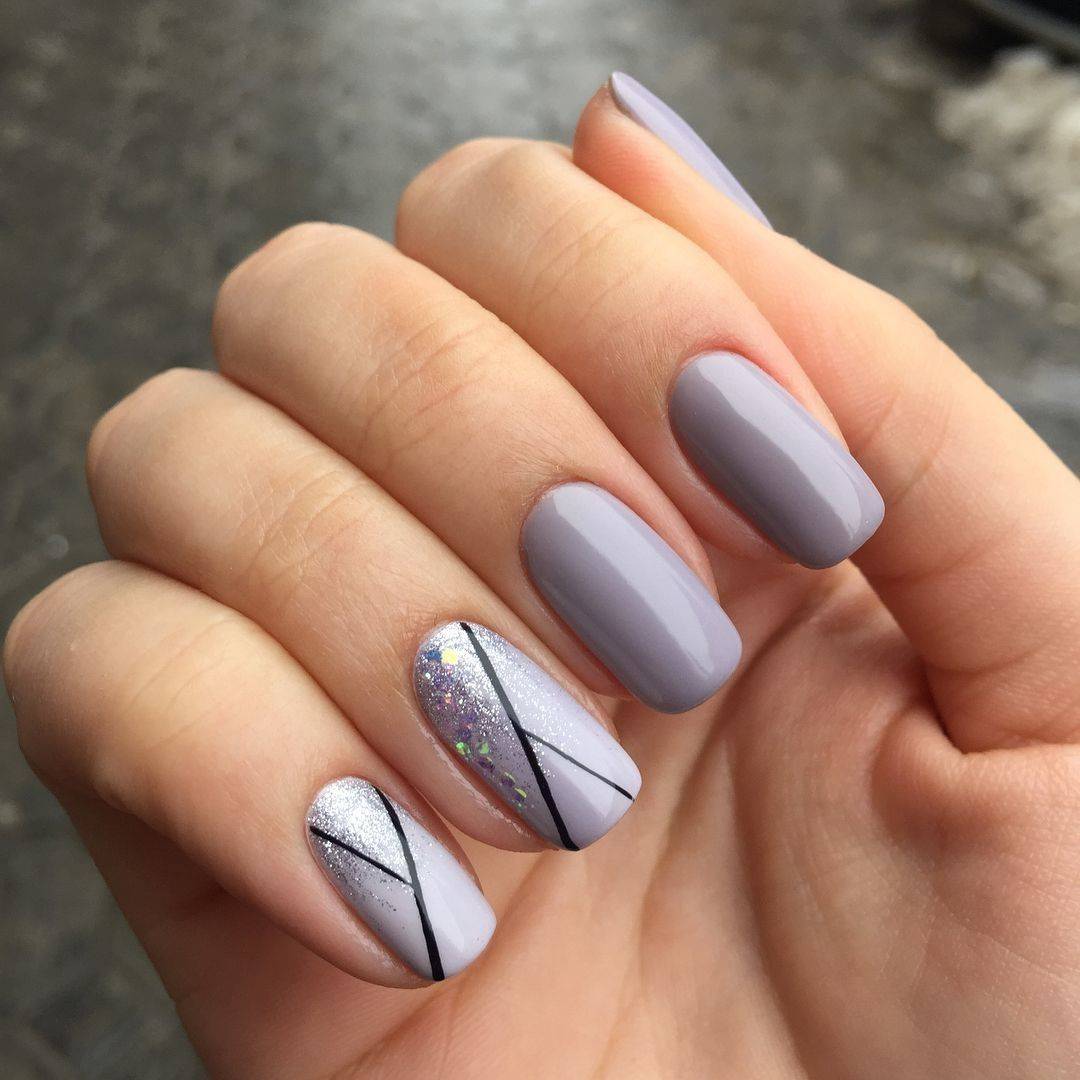 Как вариант, можно добавить на один или два ногтя несколько абстрактных геометрических фигур. Или украсить пару ноготков фольгой. Можно добавить бульонок или блесток в дизайн.