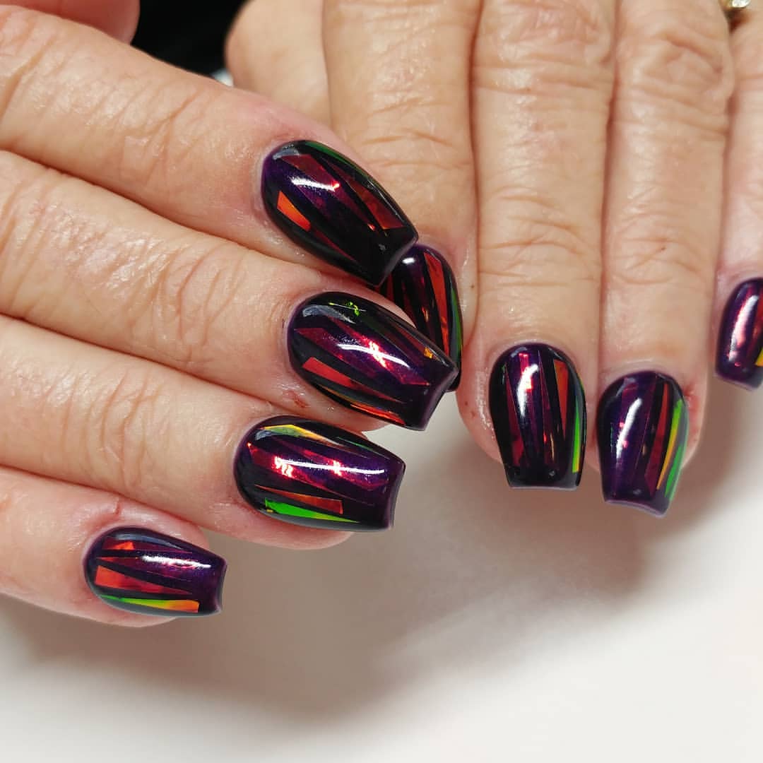 - черный лак и разноцветная фольга. Самый эффектный вариант, можно использовать голографическую фольгу.
