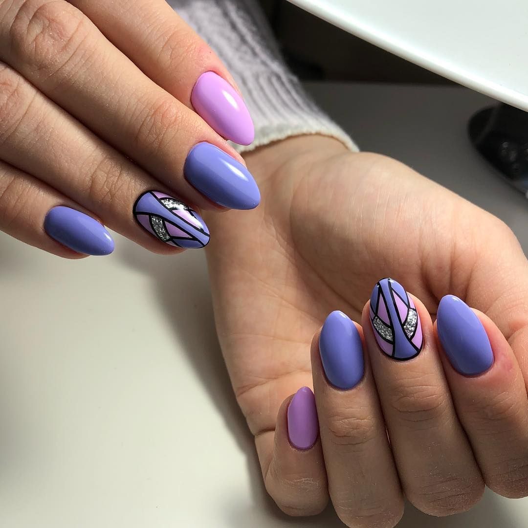 Сочетание Абстрактных рисунков с различными геометрическими фигурами делает маникюр с одной стороны стильным и строгим, а с другой стороны, абстракция придает ему свободы и легкости. Можно бесконечно фантазировать с этим видом дизайна и делать абсолютно уникальные рисунки на ногтях.