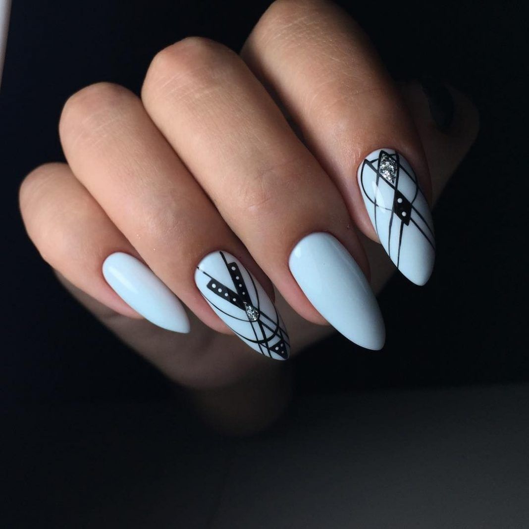 Длинные ногти могут стать отличной платформой для размашистых, геометрических рисунков. Что будет актуально:
