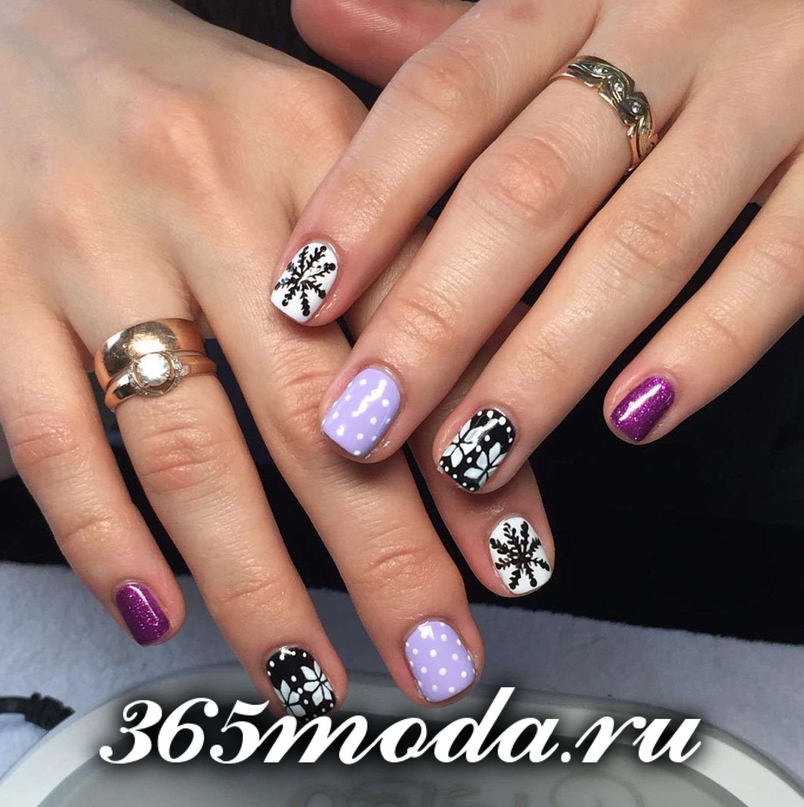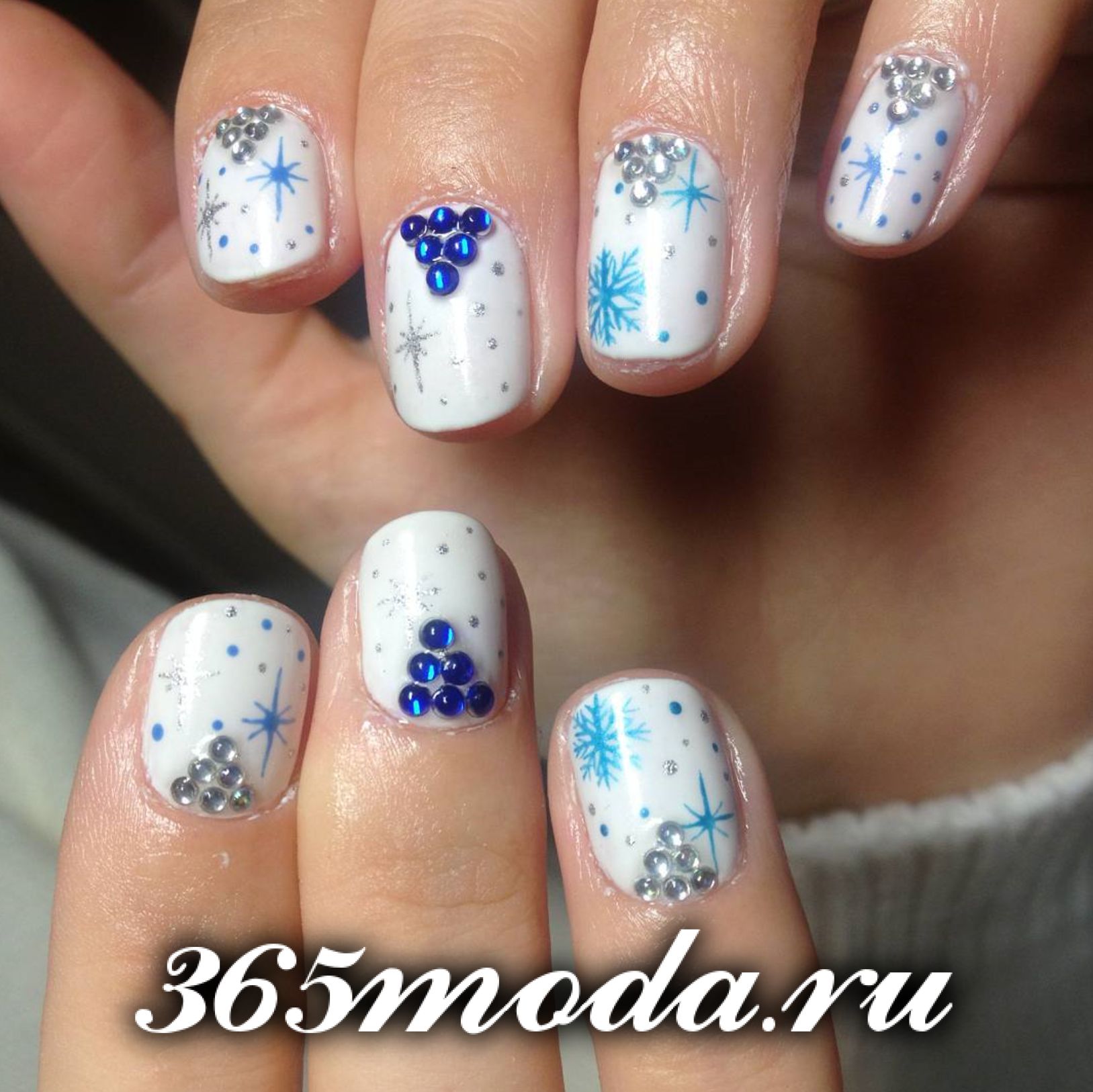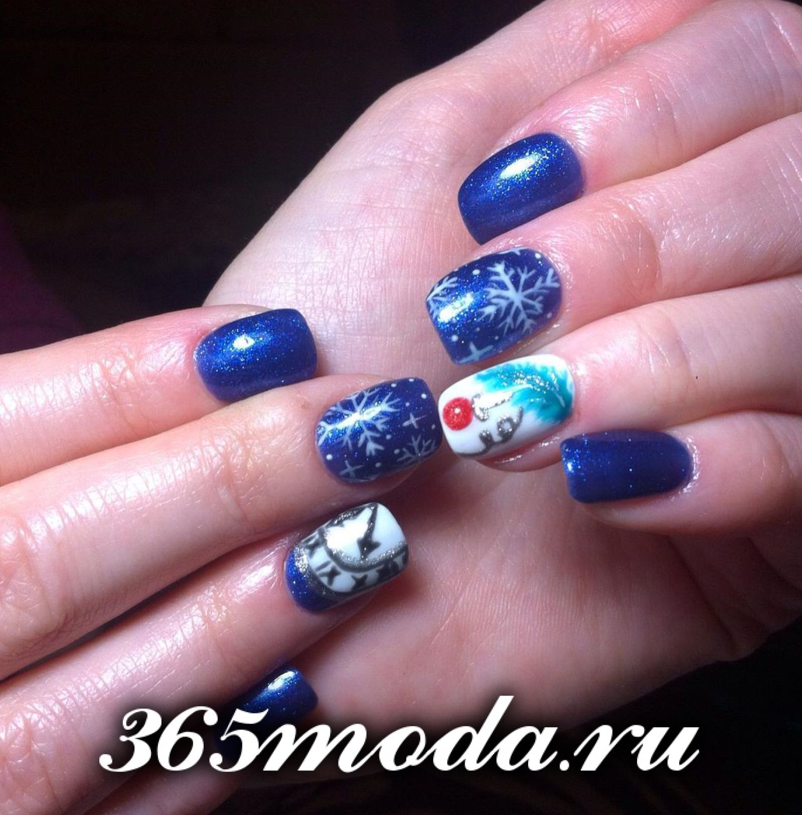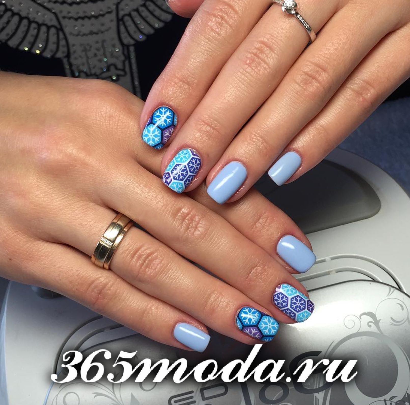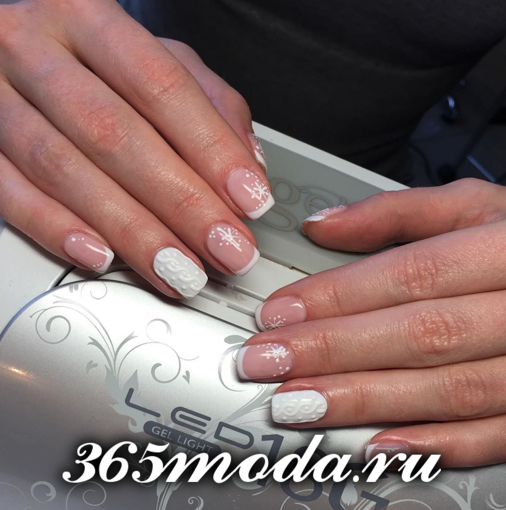 С короткими ноготками нужно быть немного осторожнее. При слишком интенсивном декоре зимний маникюр получится не стильным, а пошлым и перегруженным. И без того небольшая длина ноготков визуально станет еще меньше, руки будут казаться менее изящными. Но не стоит расстраиваться — мы нашли для вас огромное количество вариантов зимнего маникюра на короткую длину. Просто выбирайте и воплощайте в жизнь интересные идеи.
