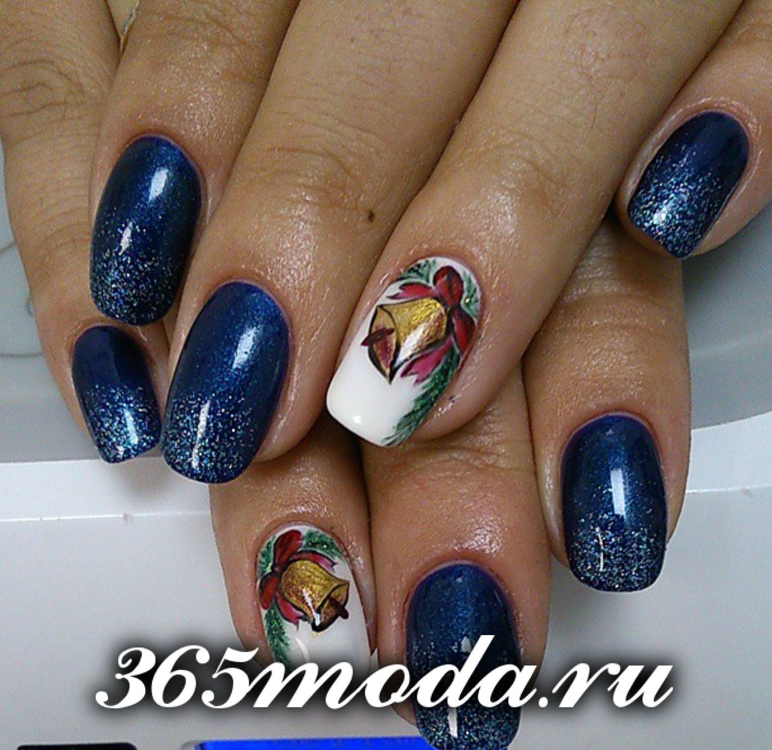 В Новый год не обойтись без синего маникюра, при этом можно выбирать как нежные оттенки, так и более глубокие