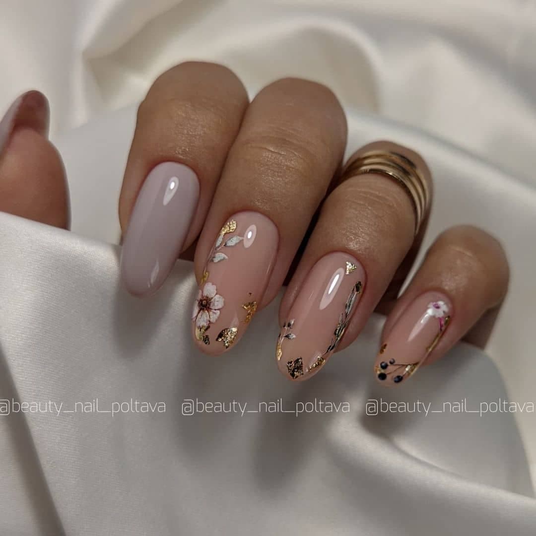 Нежно будут выглядеть цветочные мотивы. В моде розовый, лиловый, аквамариновый и мятный цвет. Девушкам нравится наносить на такой фон розы, пионы, тюльпаны и хризантемы. Особым спросом пользуются полевые цветы. Они придают рукам и ногам нотку эстетики и невесомости.