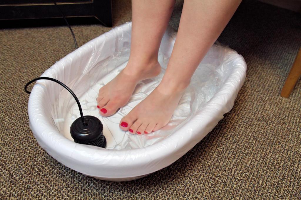 Ножные ванны рекомендуется проводить в вечернее время перед сном, чтобы кожа стоп питалась и смягчалась в состоянии покоя несколько часов.