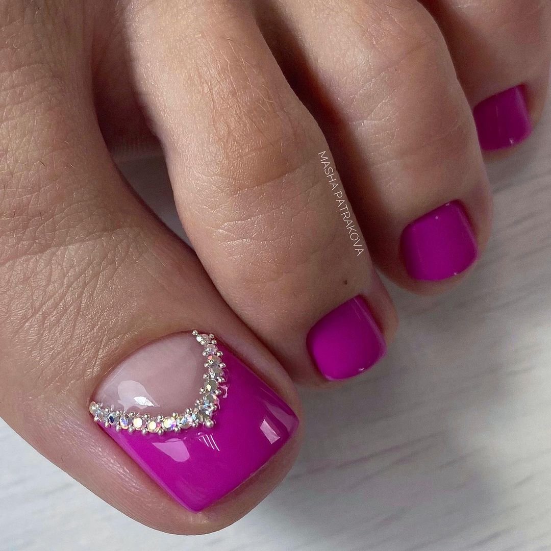 Также актуальны стразы, но их не стоит добавлять в большом количестве. Нейл-мастера рекомендуют располагать декор на большом пальце ноги — интересно будет смотреться какой-то незамысловатый узор, выложенный из маленьких стразиков