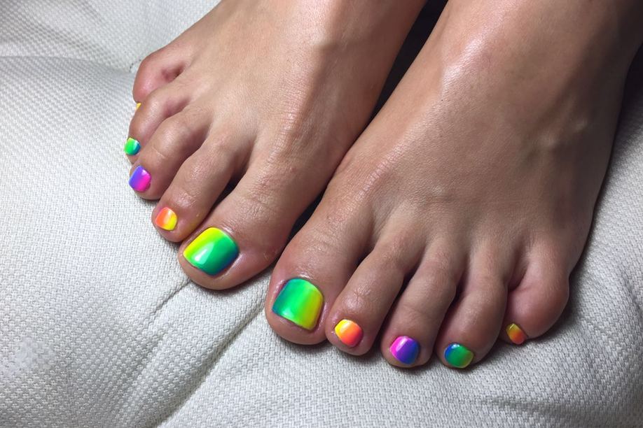 Градиентный педикюр по популярности успел “переплюнуть” французский – оценить эффектность новинки уже успели модницы по всему миру. Иногда технику называют омбре – по подобию одноименного приема окрашивания волос. По виду он напоминает растяжку цвета с плавным перетеканием оттенков. Рекомендованная палитра для омбре – яркая, поскольку только в ней хорошо видны красивые переходы. При смешивании нюдовых оттенков тоже удается добиться перетекания цветов, но оно не будет настолько заметным.
