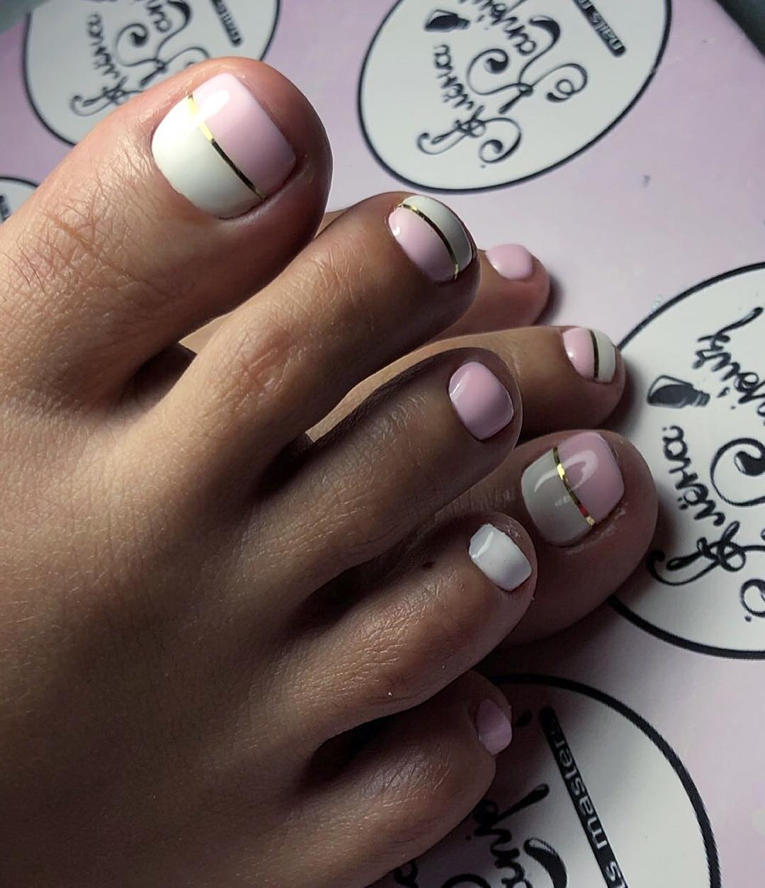 Такой педикюр подойдет любительницам романтичного стиля в одежде. Он предполагает нежное сочетание оттенков и отсутствие графичных линий.