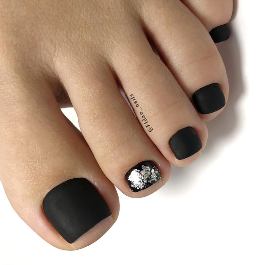 Следует только учитывать хитрости при использовании чёрного лака. Он уместен на вечеринках, тематических торжествах. В будни и на праздники чёрным цветом рекомендуется дополнять основной цвет педикюра (например, френч, шахматный или графический дизайн). Украшайте чёрные ноготки блёстками, глиттером, стразами – тогда вызывающая глубина чёрного станет вариантом для свидания или серьезного мероприятия. Модно в этом сезоне делать чёрный педикюр под макияж глаз smoky eyes, и носить всё под ультрамодное виниловое пальто.