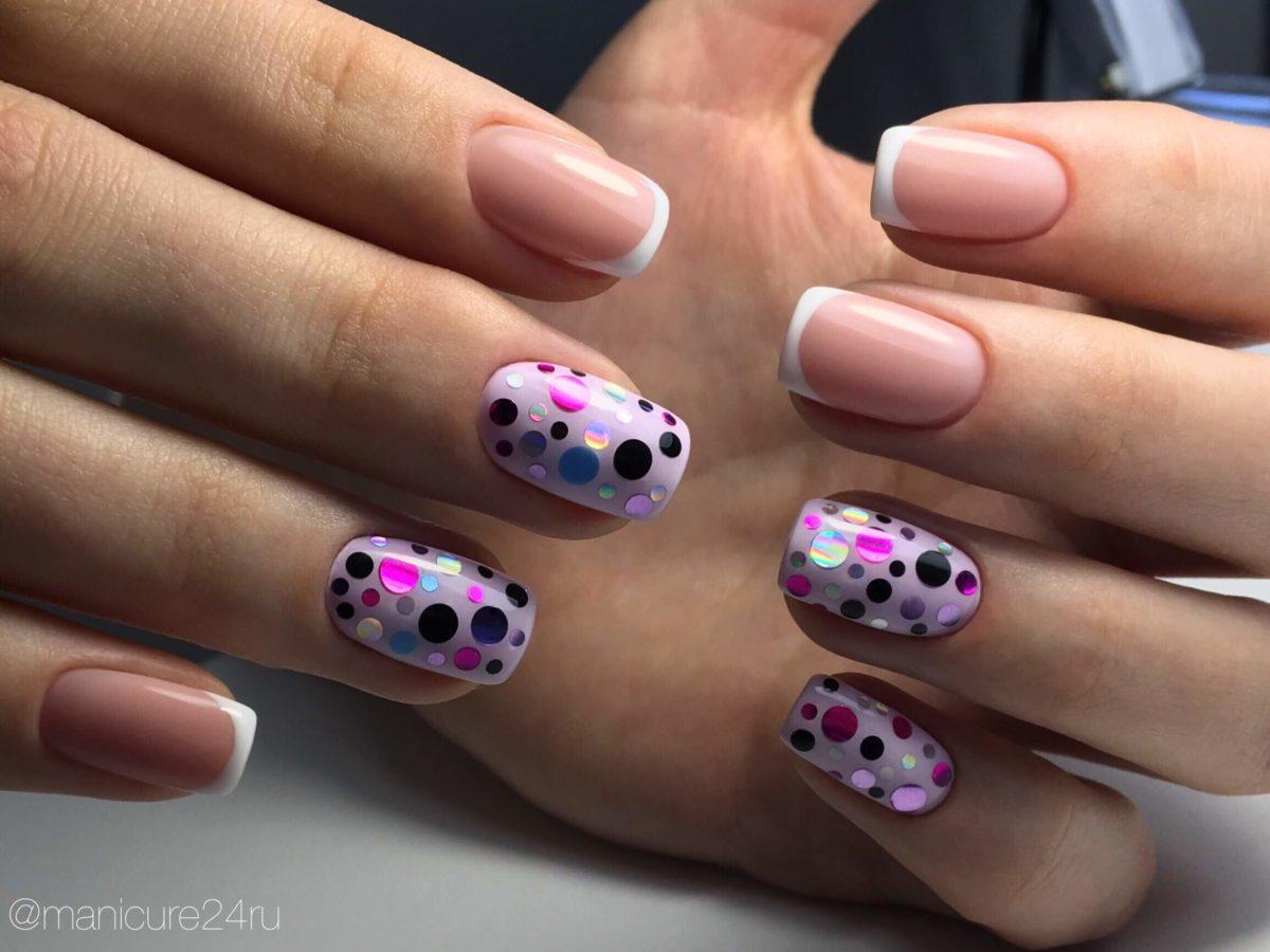 Уход за ногтями с маникюром френч с блестками