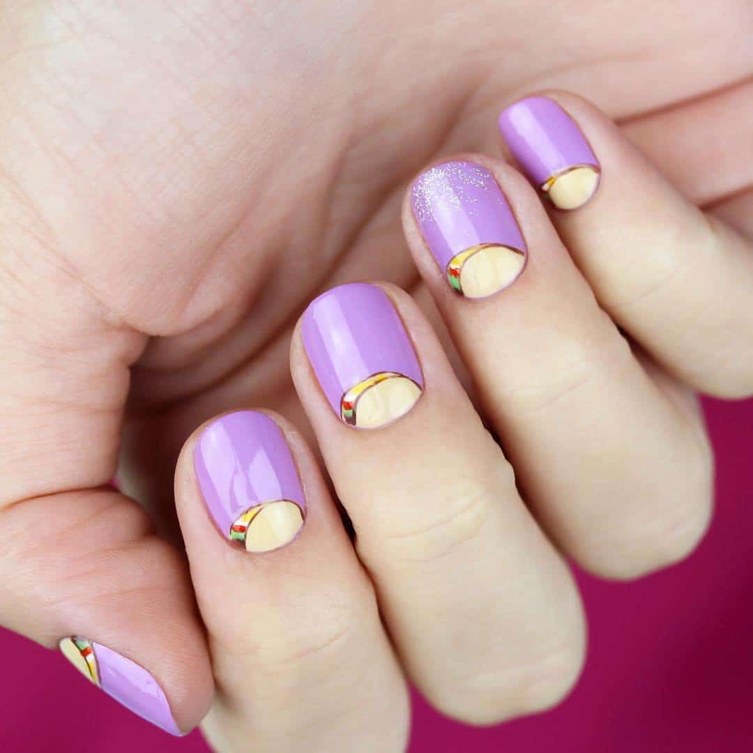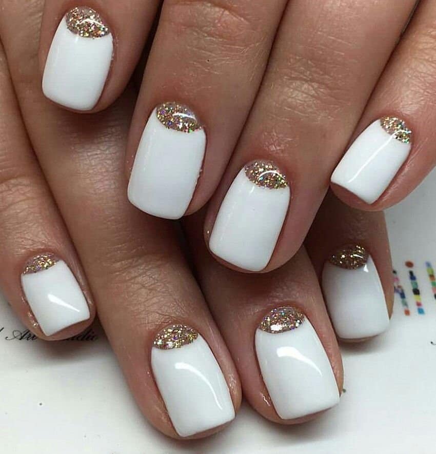 Если вы ищете красивые идеи дизайна маникюра с золотыми блестками, то лунный маникюр с золотым лаком – отличный выбор. Вы можете использовать золотой лак для лунки и обрамления ногтя, а также добавить золотые блестки для дополнительного эффекта.