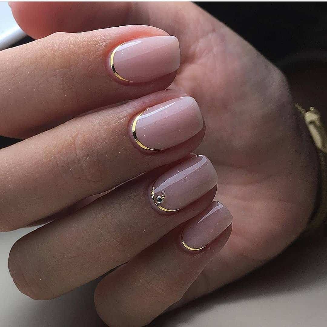 Для повседневного маникюра стилисты не рекомендуют использовать много блеска на ногтях. Но чтобы образ не выглядел скучным, они советуют добавлять ноготкам изюминки, например, золотую кайму по линии улыбки, неброские узоры. Золотистый лак сделает образ более изысканным и богатым.