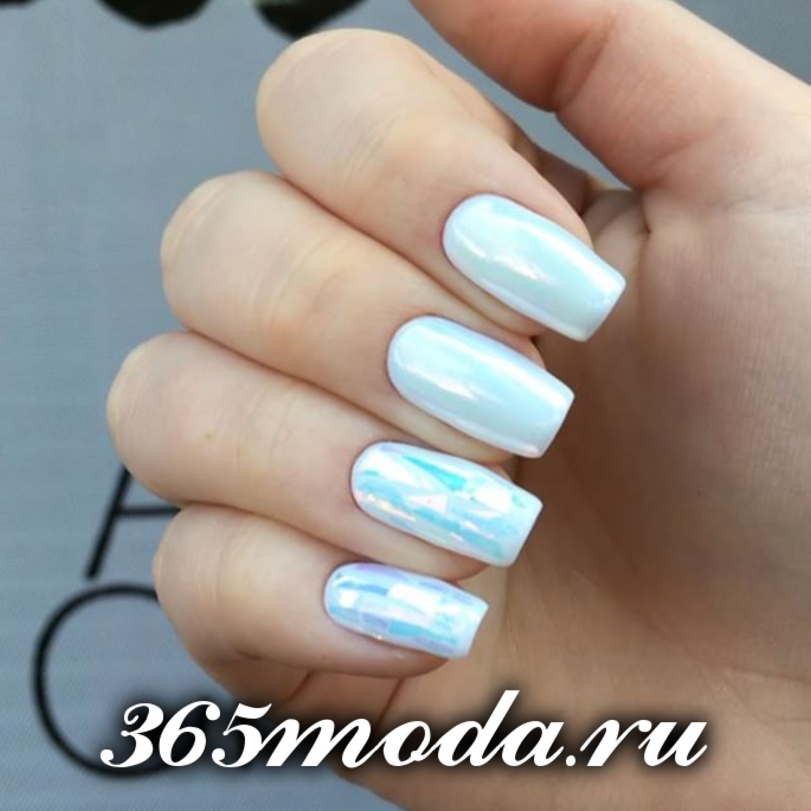Модный праздничный вариант – зеркальный маникюр или эффект «битое стекло». Они создадут легкое, зажигательное настроение для вечеринки, торжества или фотосессии.