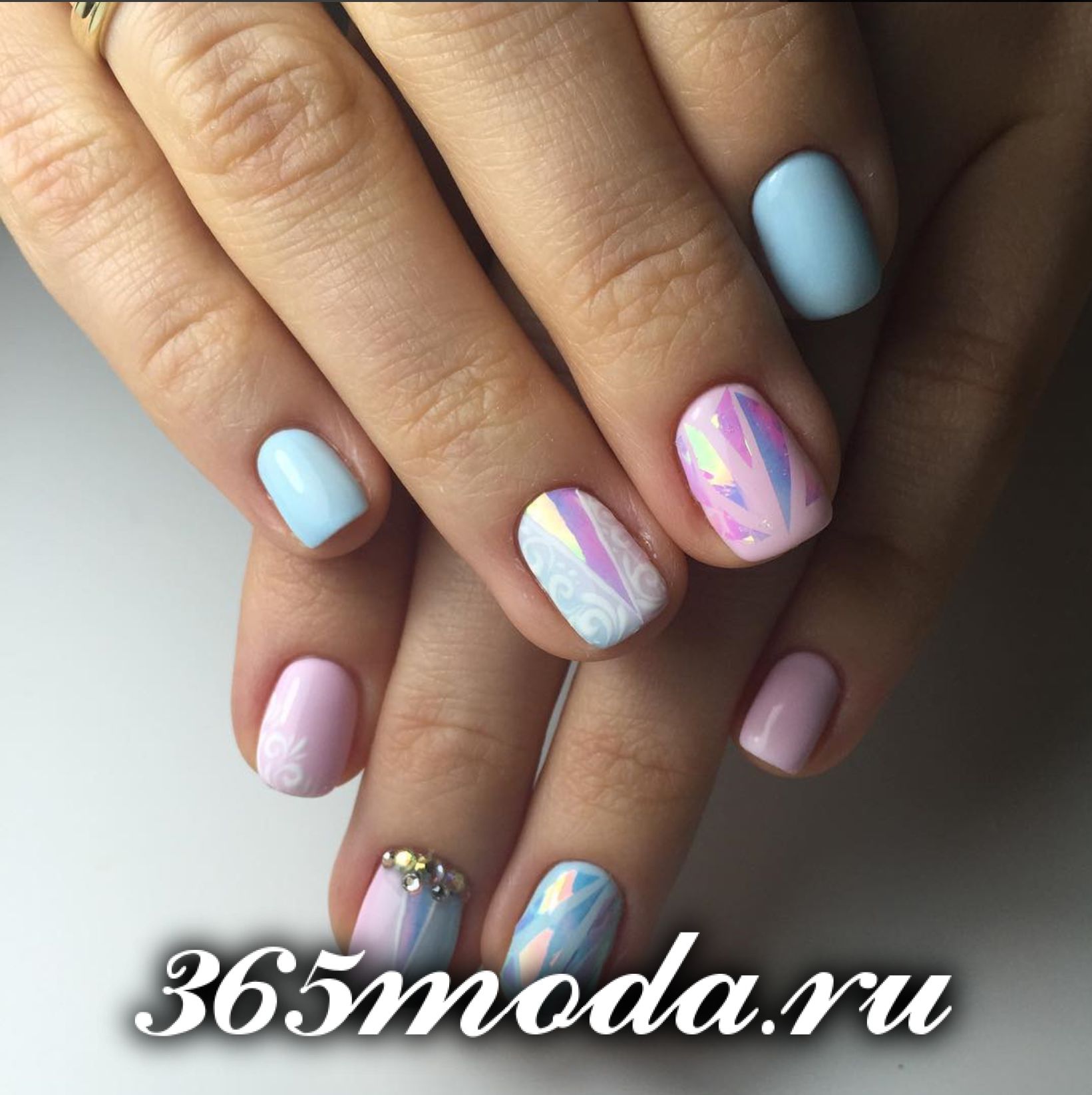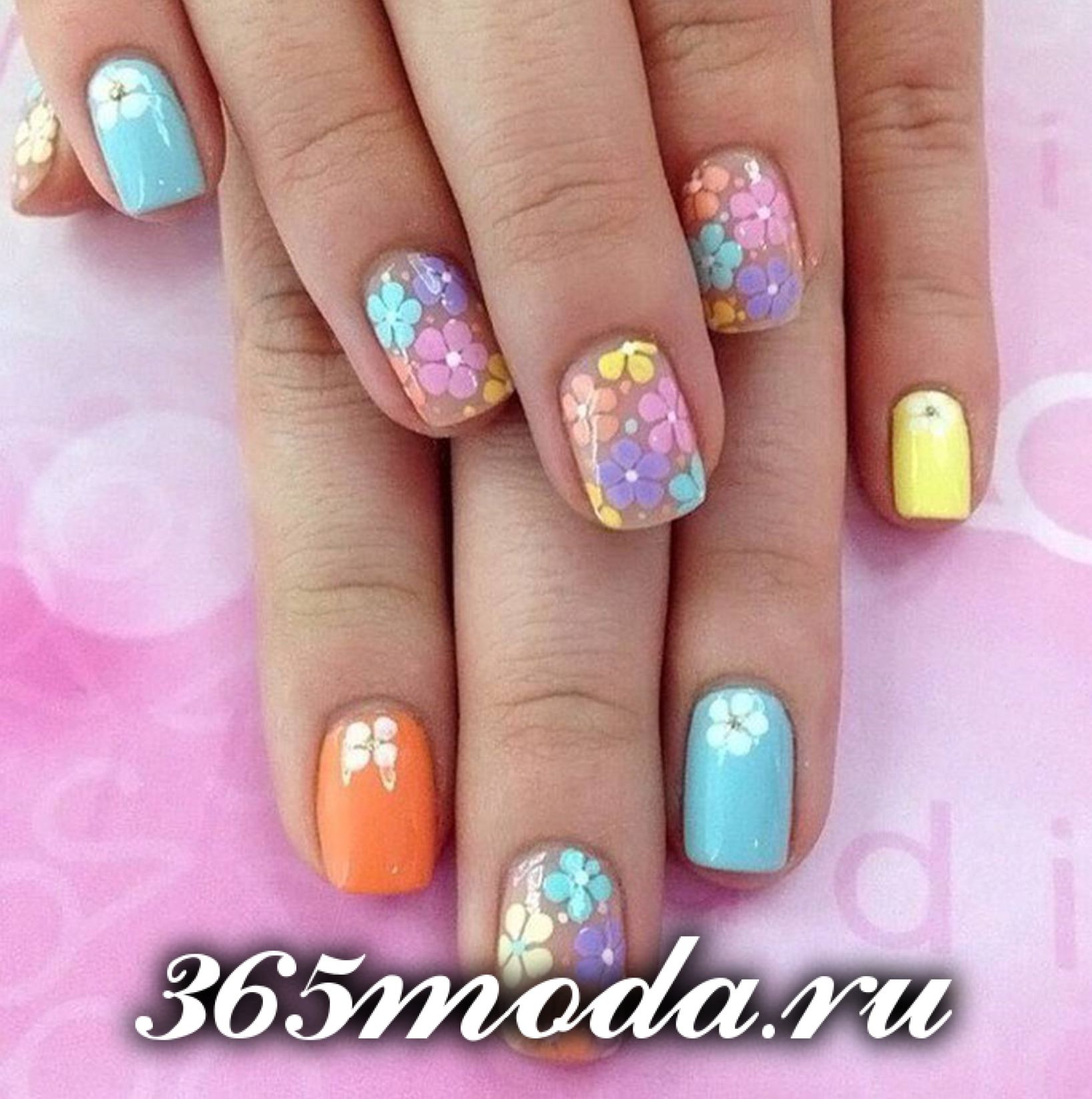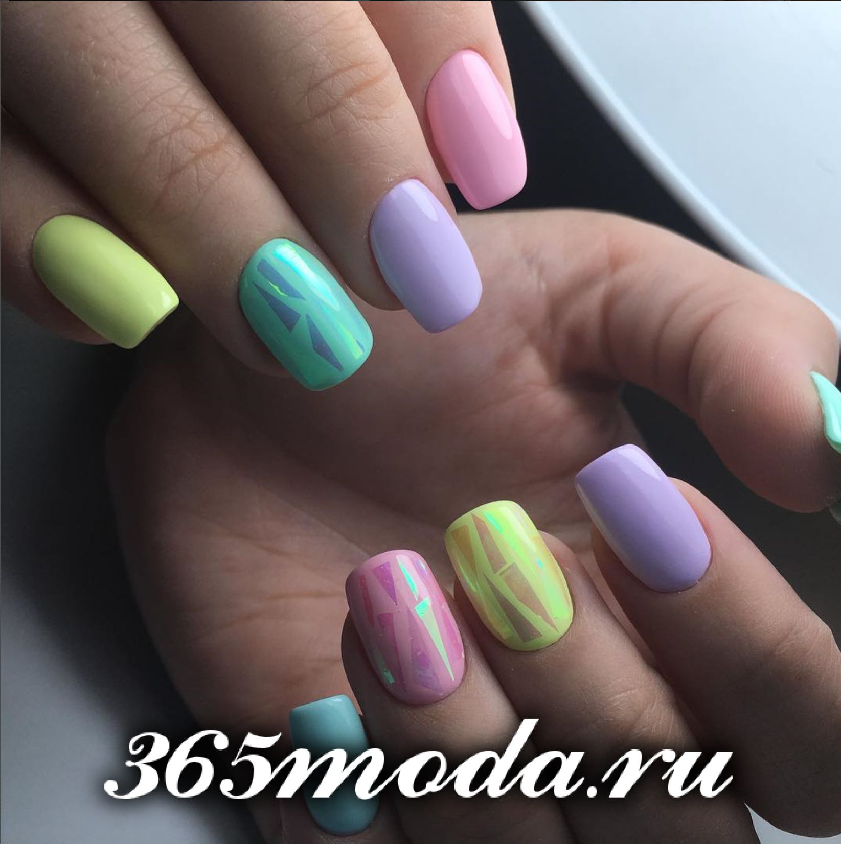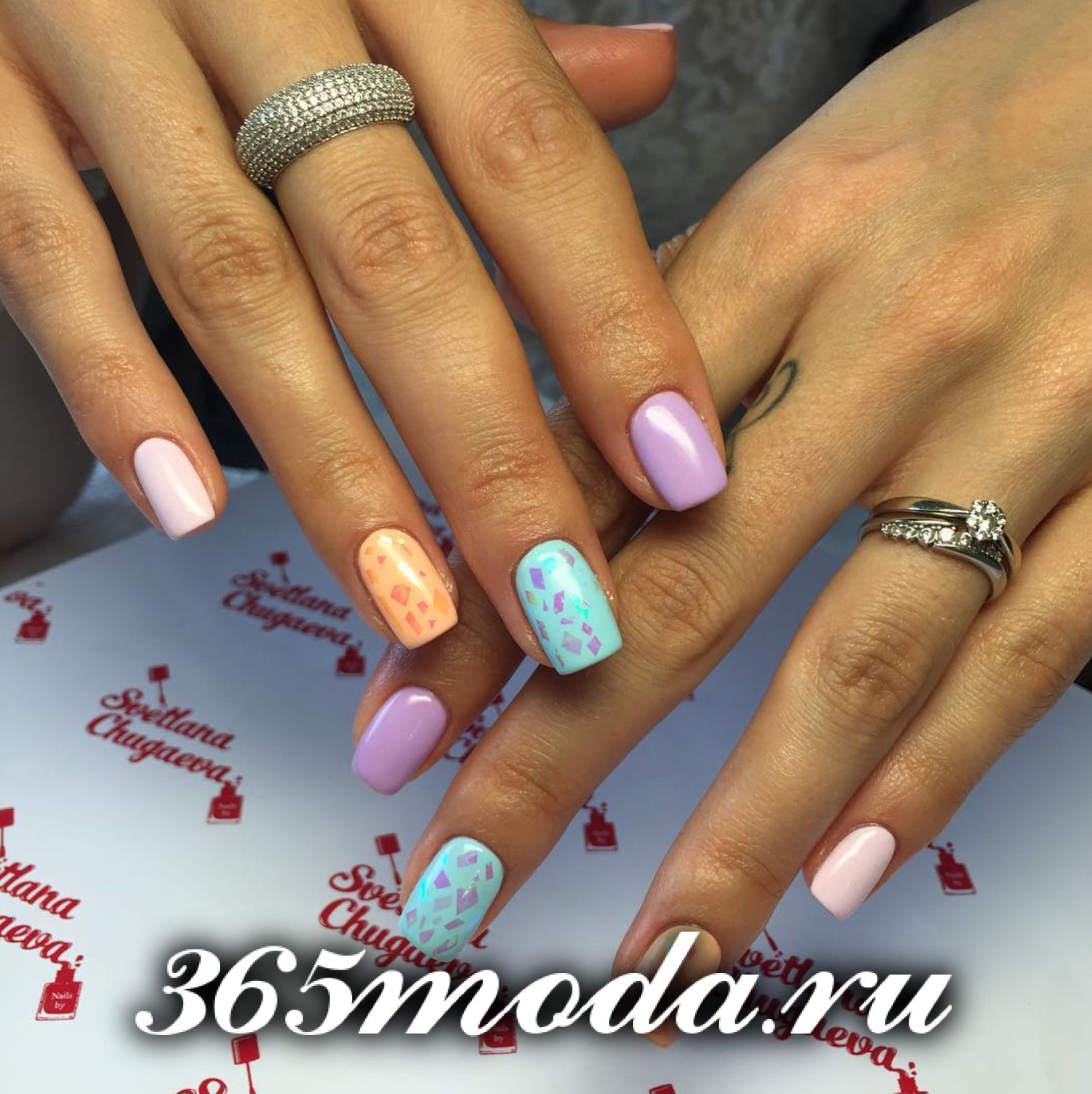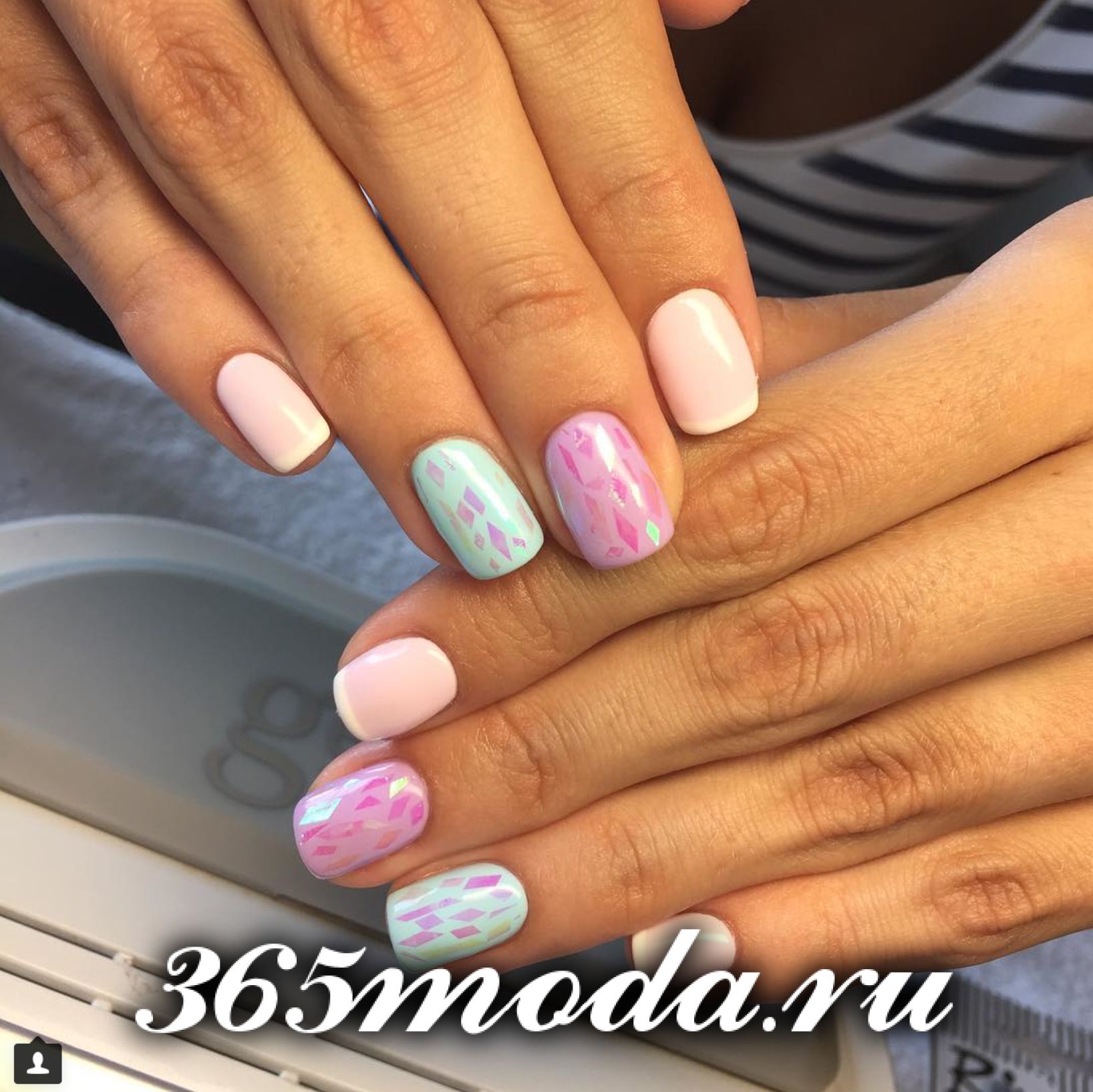 Еще один многоцветный, но нежный и женственный дизайн с блестками.