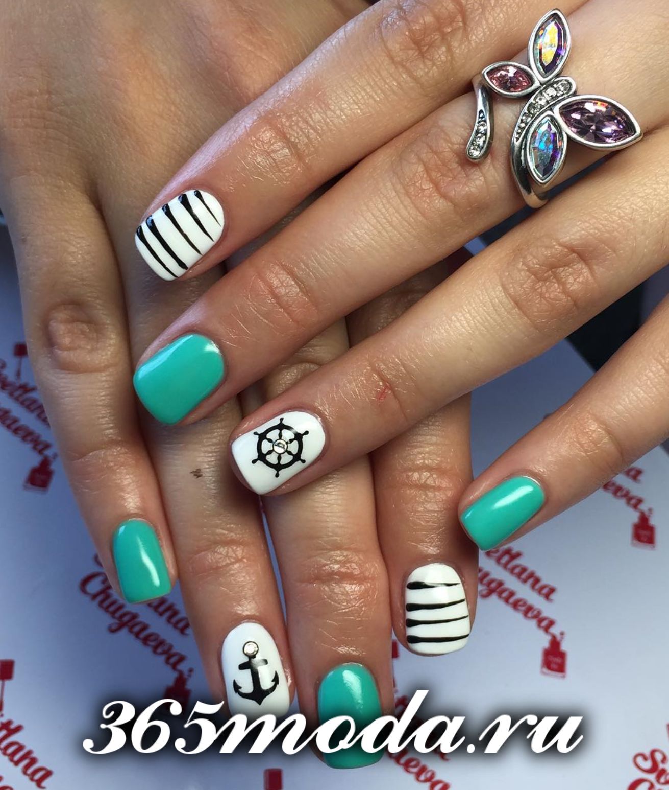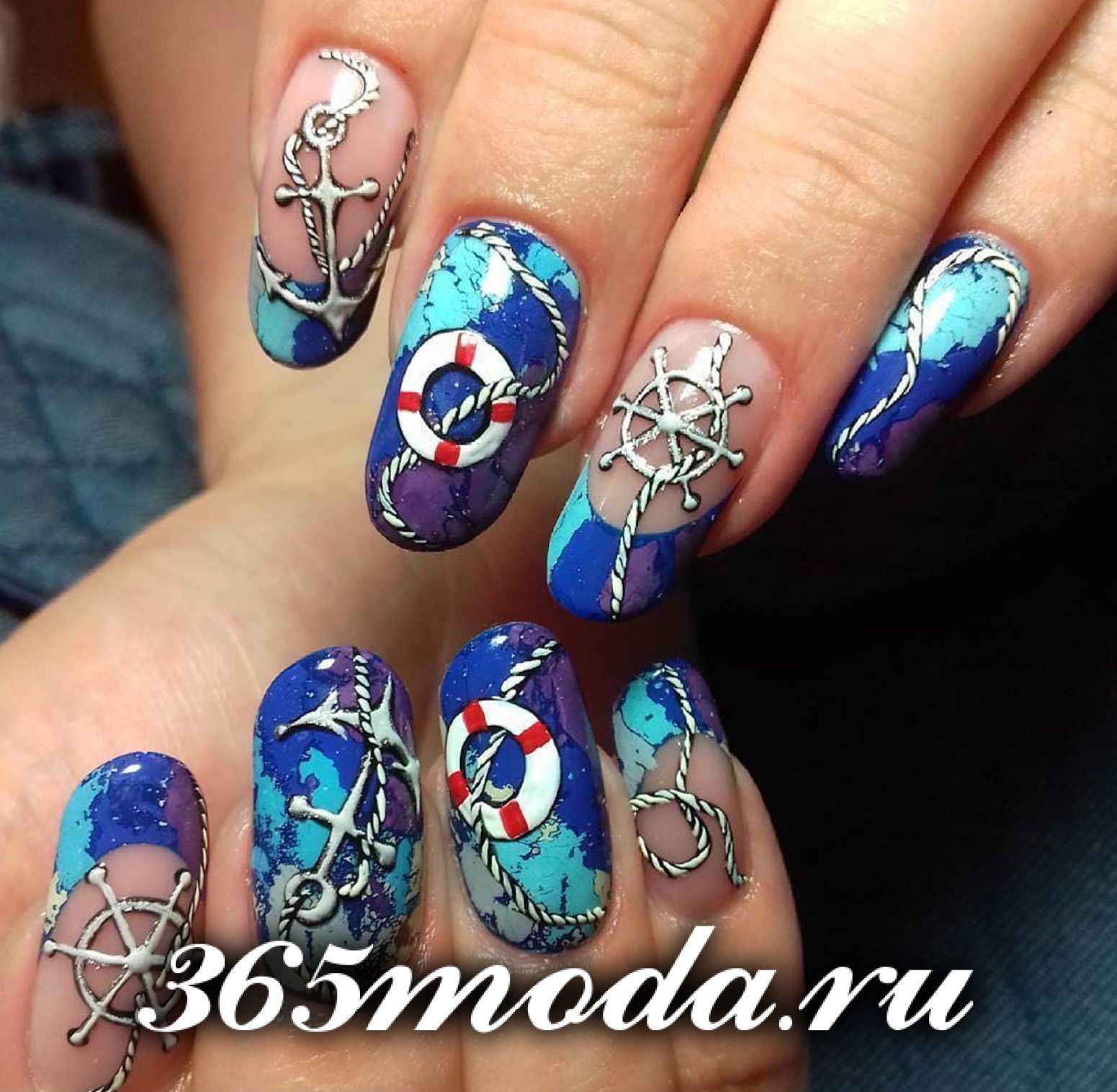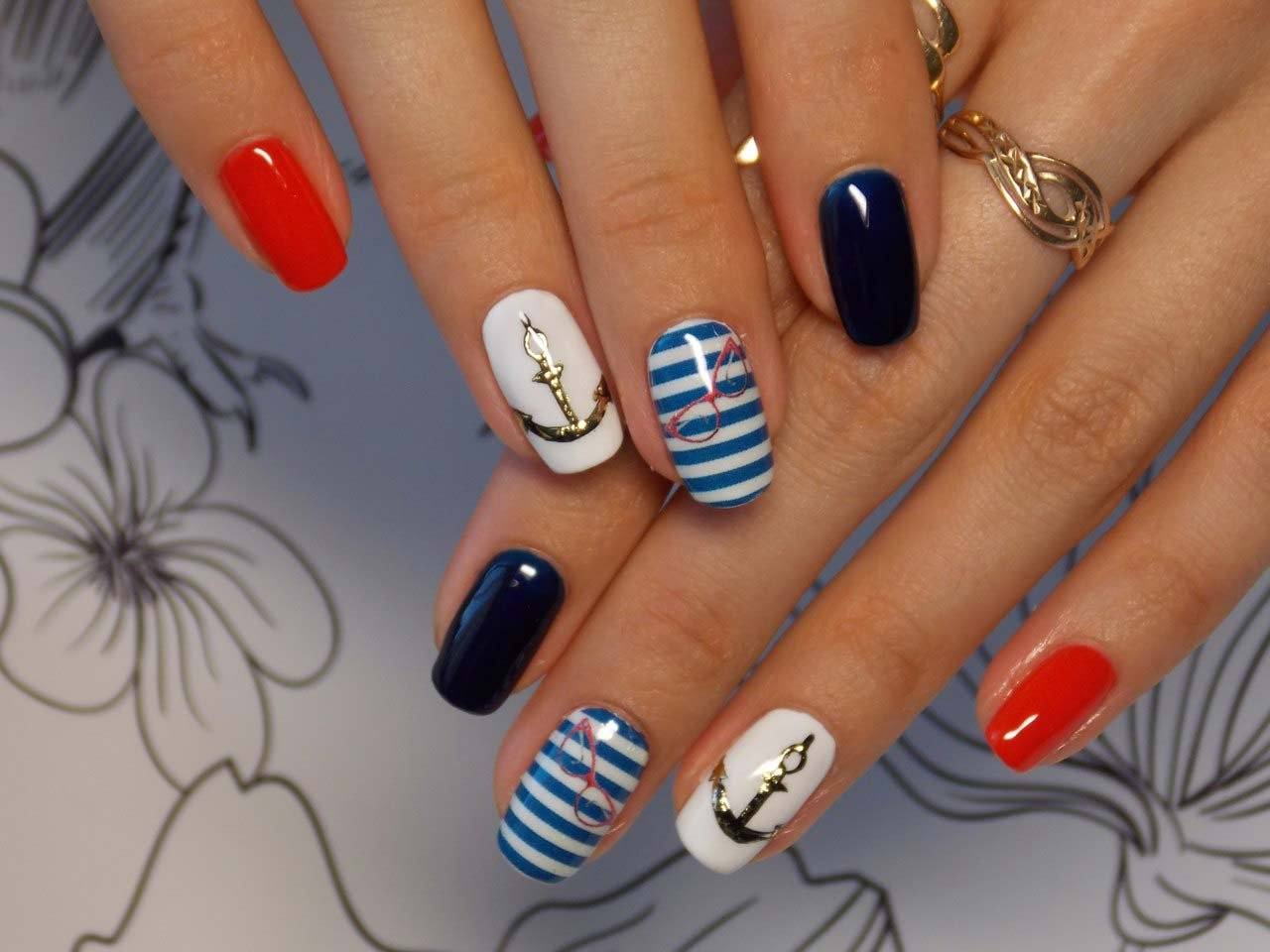 Четвертый по-популярности дизайн с рисунками — это рисунки в морской отпускной тематике. Какое же лето — без отдыха на море. Море, пальмы, морские обитатели, тропические цветы и растения, и все что с этим связано, хотят видеть у себя на ноготках красотки, отправляясь в долгожданное путешествие. Посмотрите только, какие красивые и необычные рисунки делают талантливые nail-мастера в этом летнем сезоне.