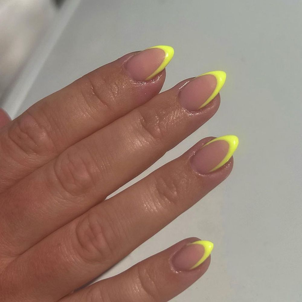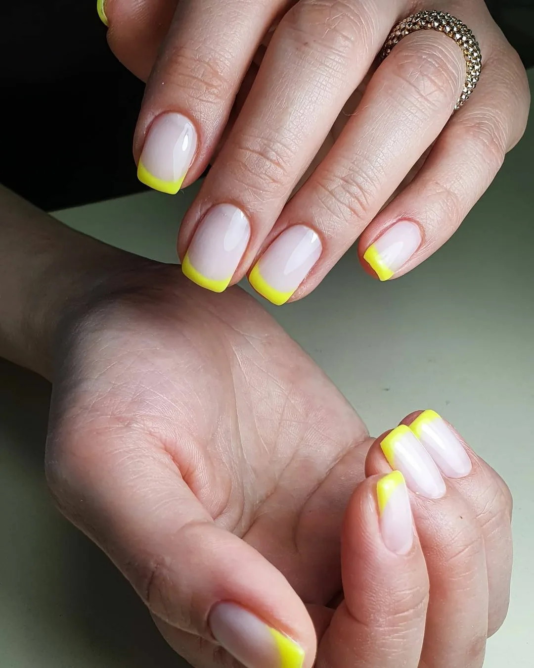 Желтый лак уже несколько сезонов подряд не теряет своей актуальности, от нежных пастельных оттенков желтого до яркого неонового. Поэтому в 2024 году можете смело выбирать френч в желтом цвете.