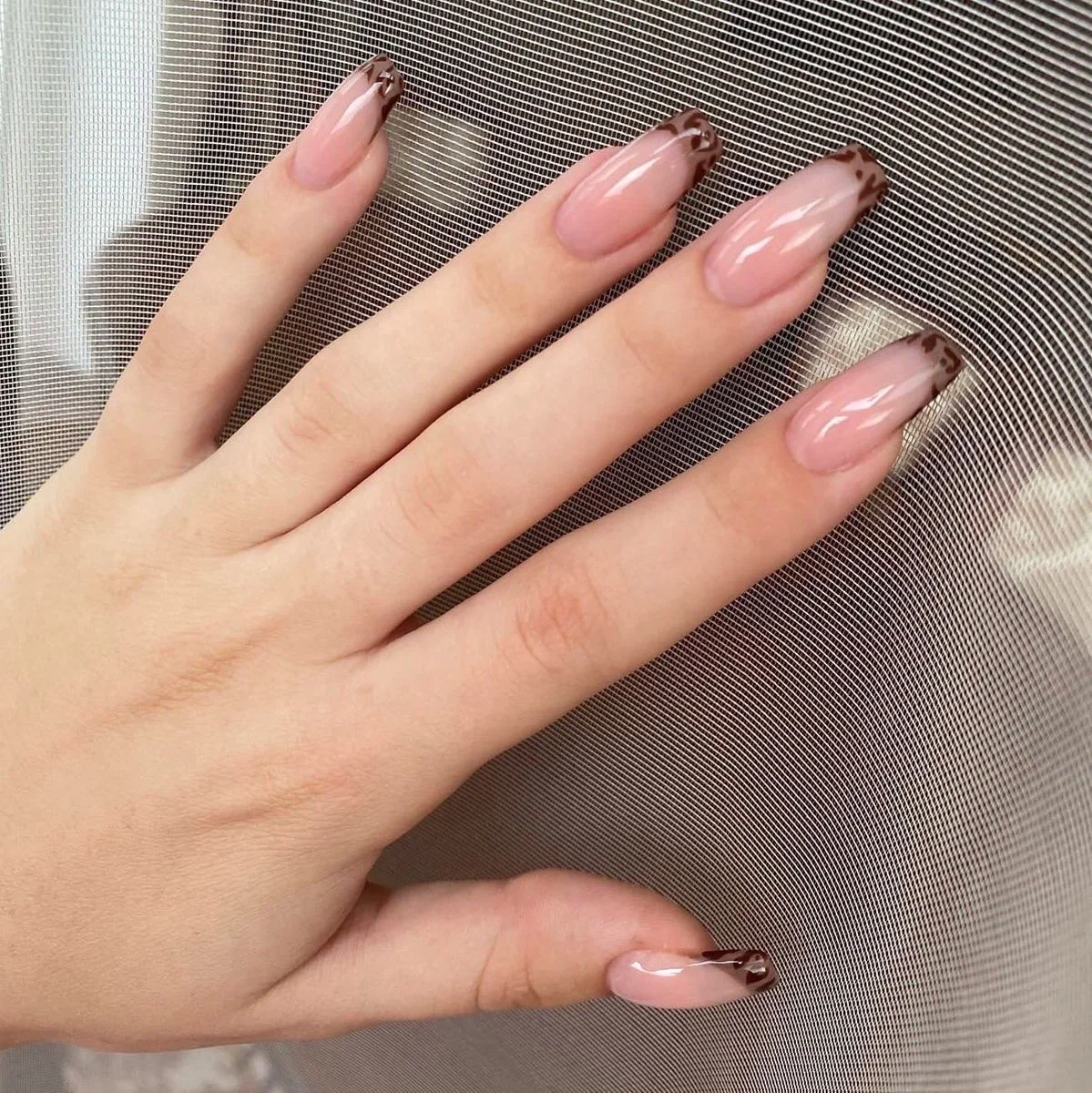 В тренде светлые покрытия с тёмным кончиком ногтевых пластин.