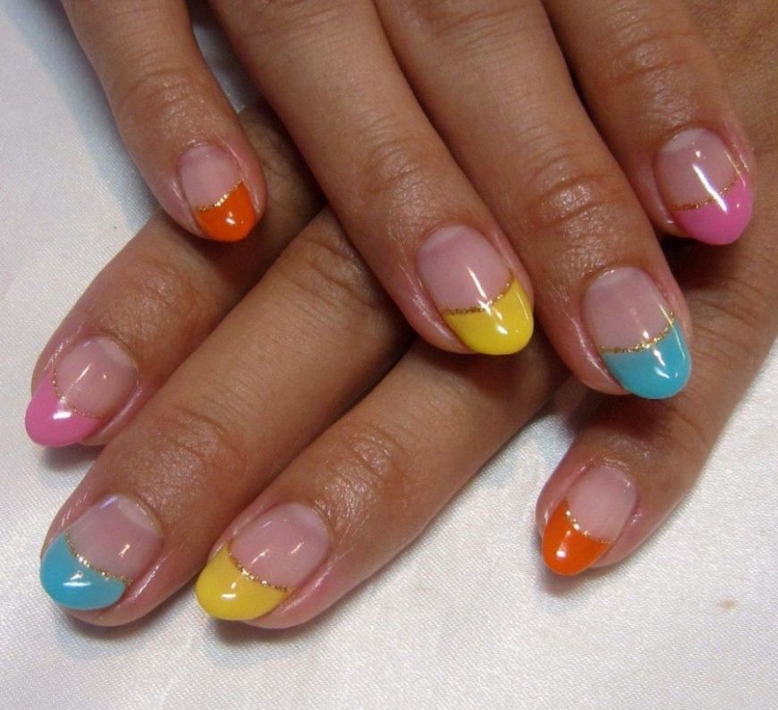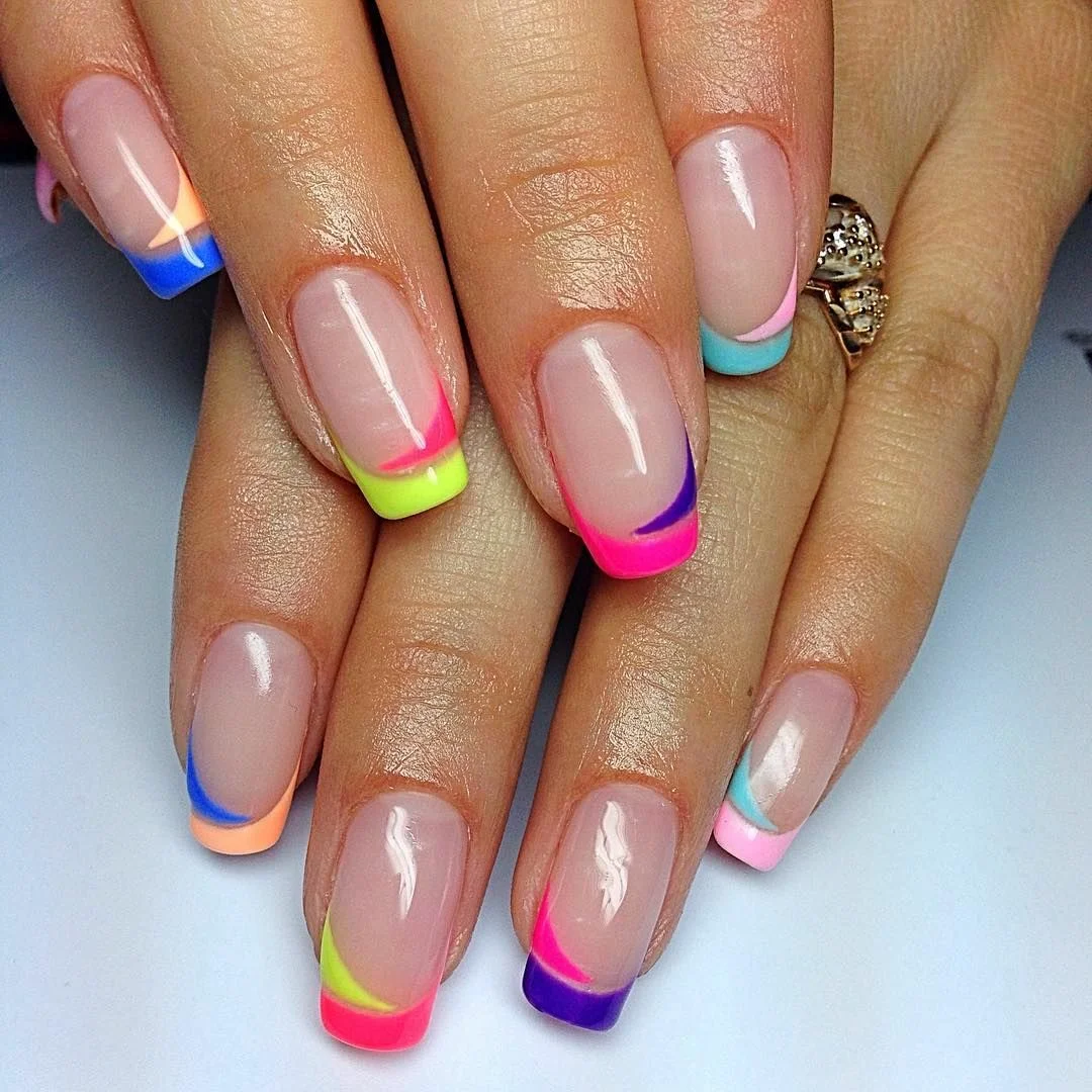 Фото яркого маникюра цветного маникюра френч можно увидеть в самых трендовых журналах, при этом он практически не имеет ограничений по форме и длине ногтей.