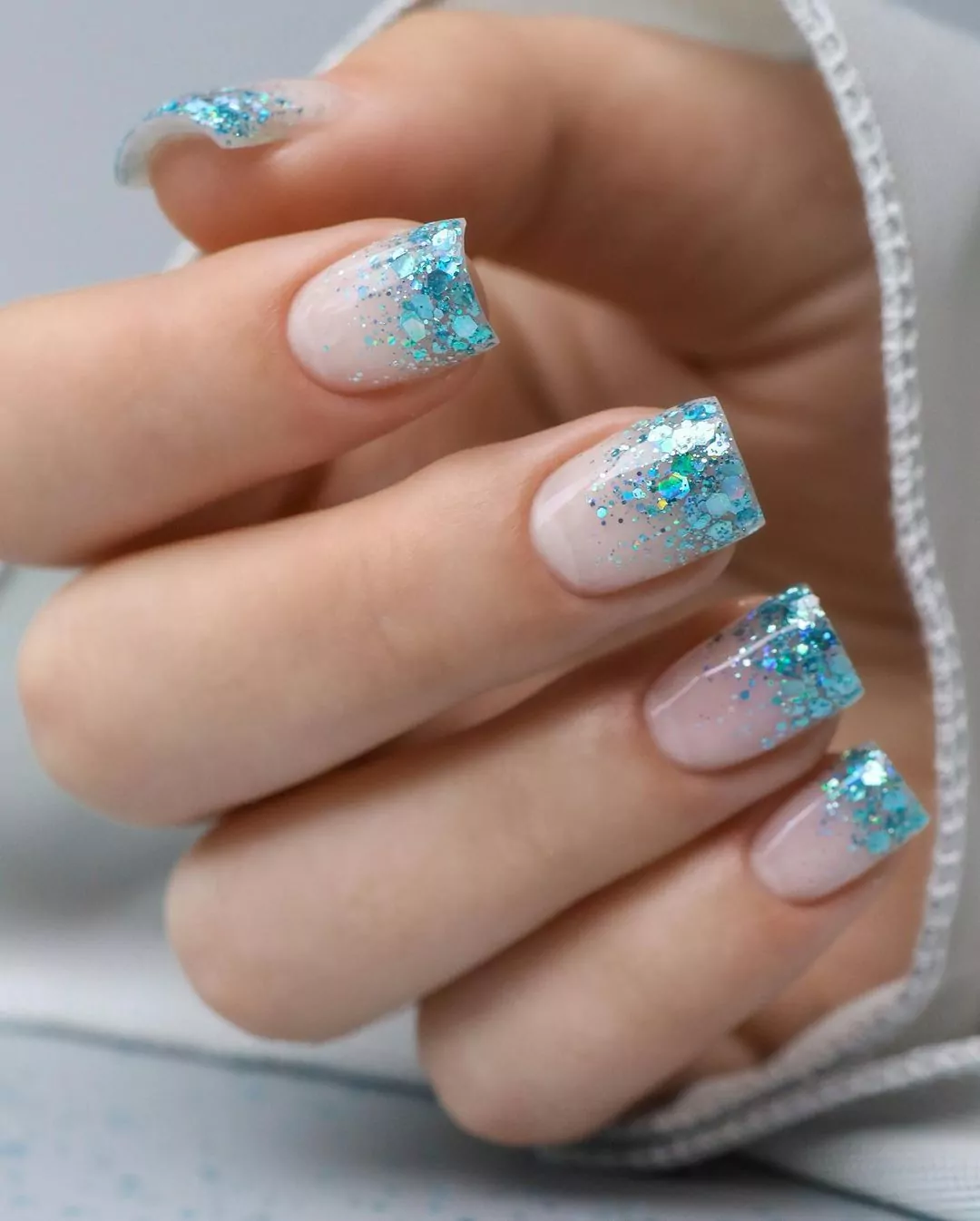 Актуальное полупрозрачное покрытие и немного глиттера на кончиках – и вы великолепны!