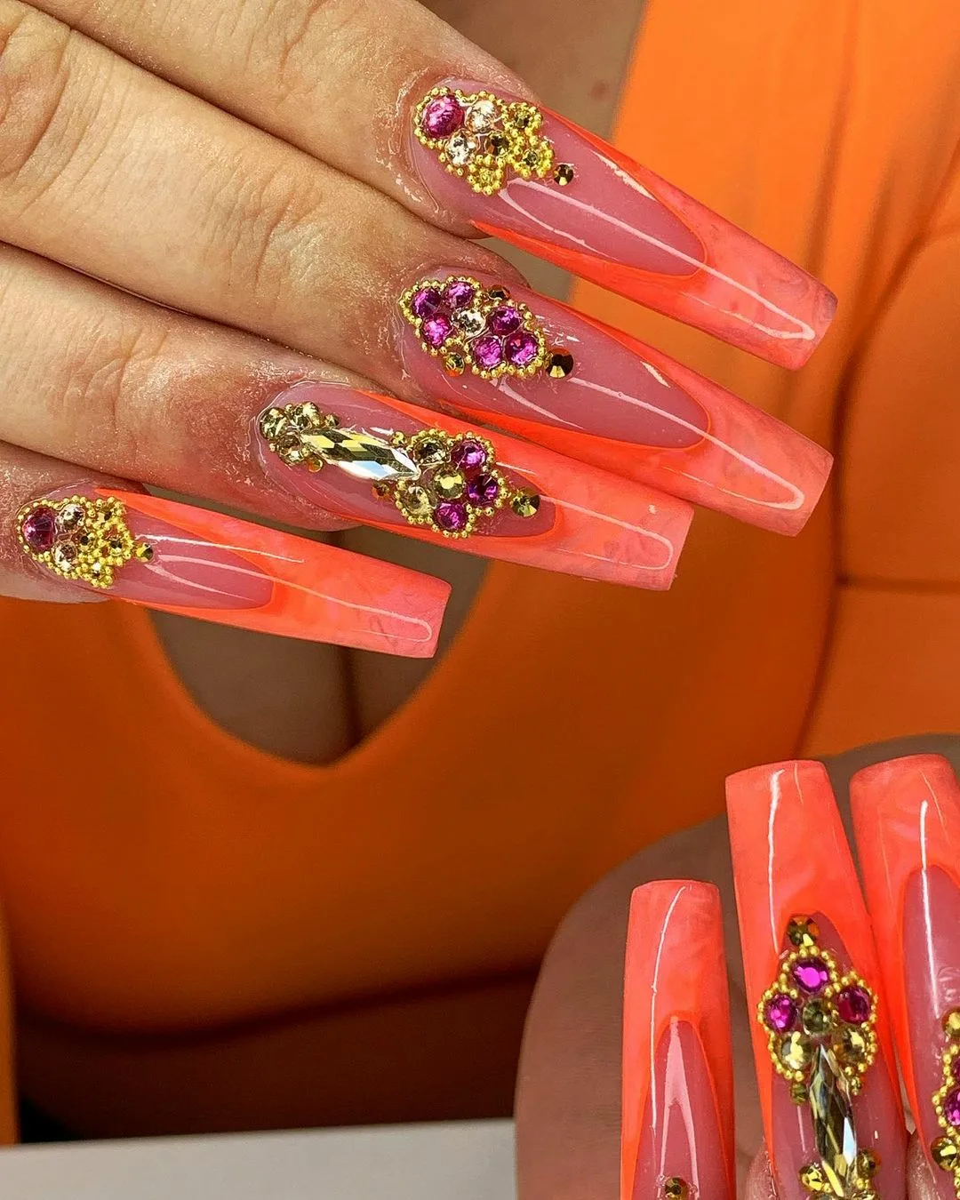 В настоящий момент насчитывается более 100 подвидов оранжевого цвета. По мнению мастеров, в текущем сезоне для оранжевого френча самыми популярными оттенками являются: