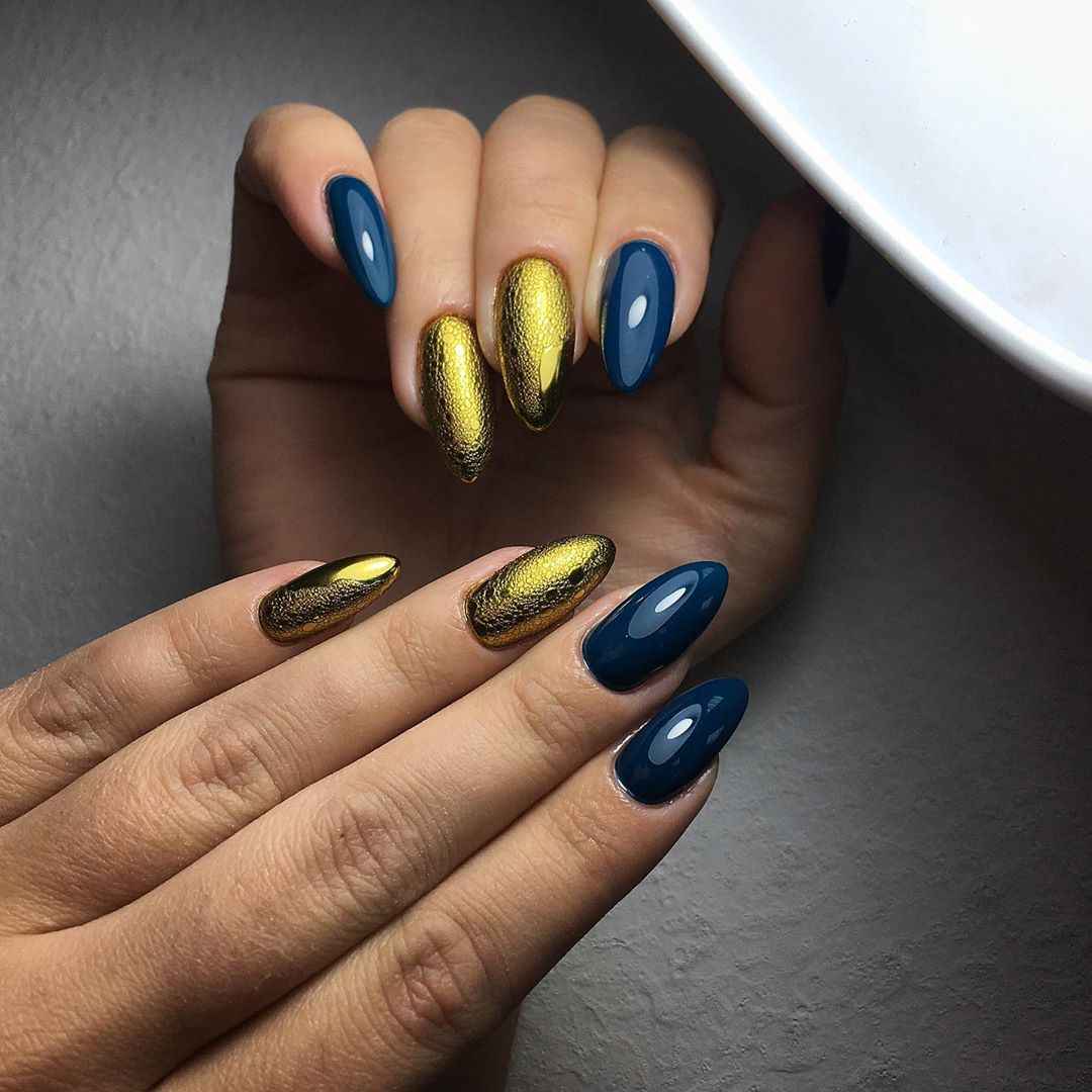 Мраморный маникюр с золотым и блестящим гель-лаком