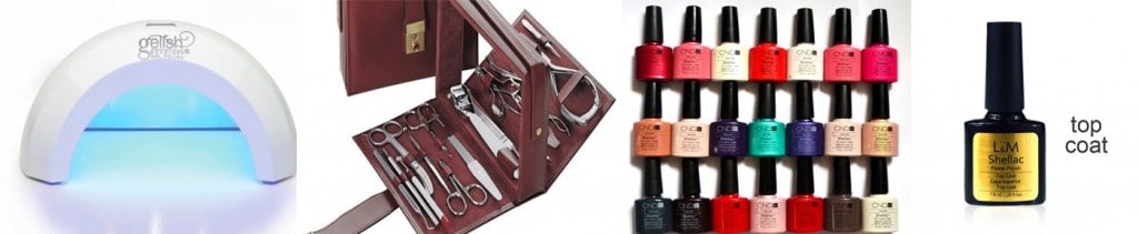 - Можно приобрести уже готовый набор с необходимыми материалами для лунного и френч-маникюра шеллаком. Отдельной покупкой будет лампа и расходники.