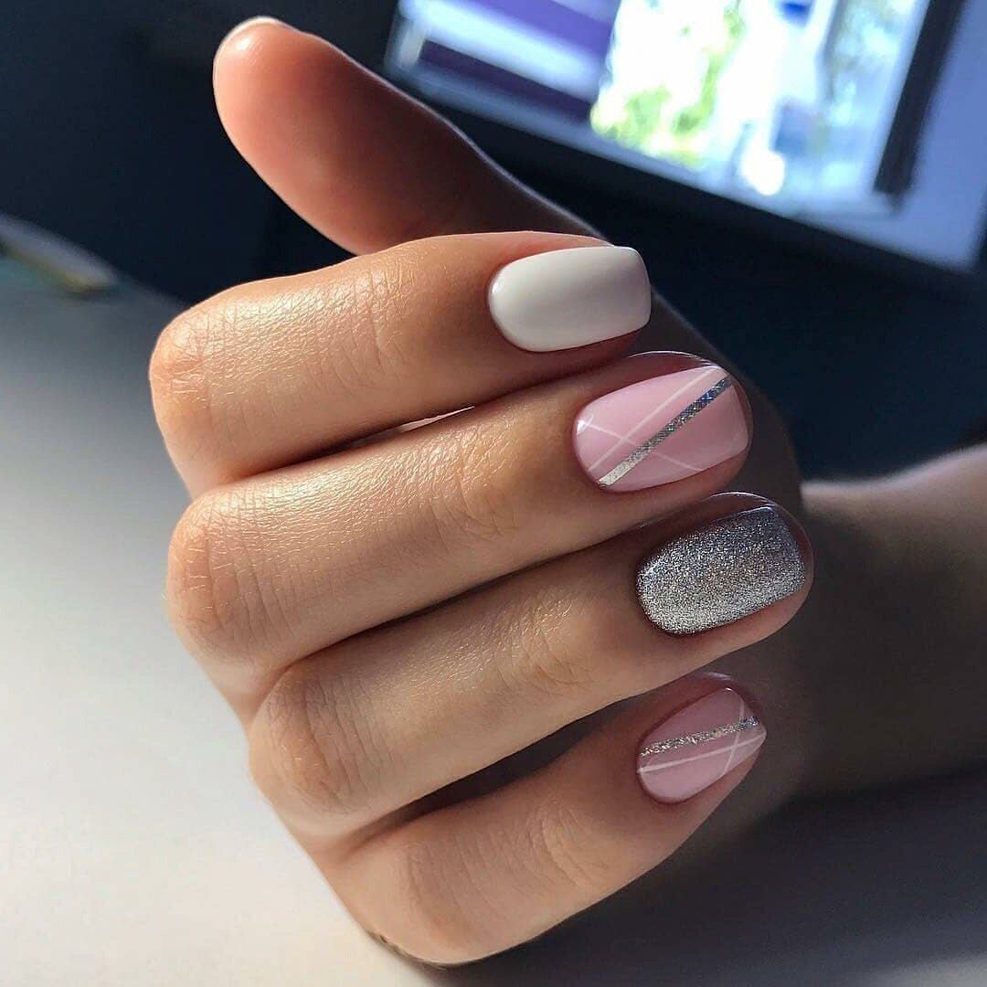 На коротких ногтях этот дизайн очень стильно выглядит, как на квадратной, так и на овальной формах ногтей. Его также можно исполнить, как в светлой, так и в более темной цветовой гамме. Посмотрите, как мило и стильно смотрятся короткие ноготки, в различных вариантах исполнения минималистичного дизайна.