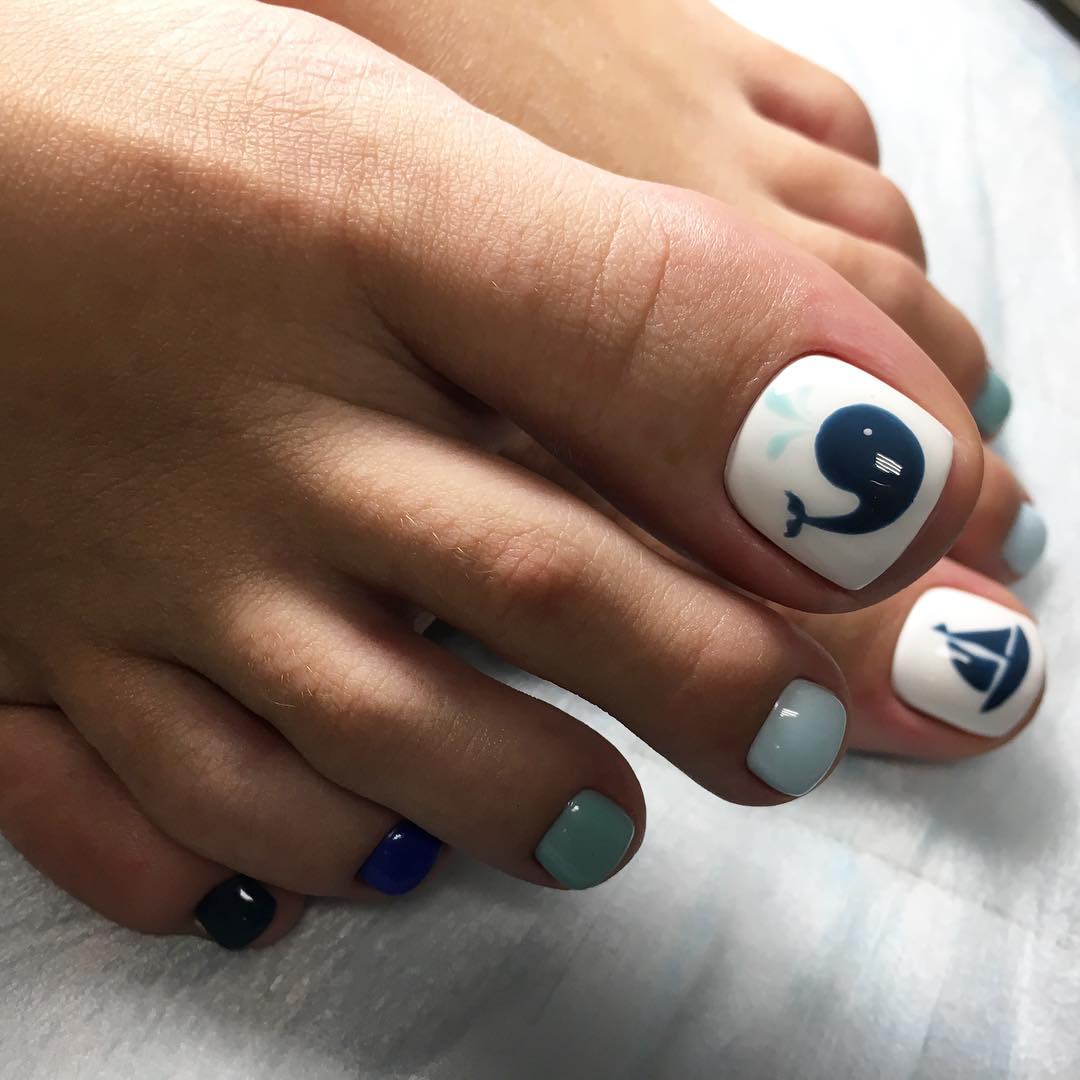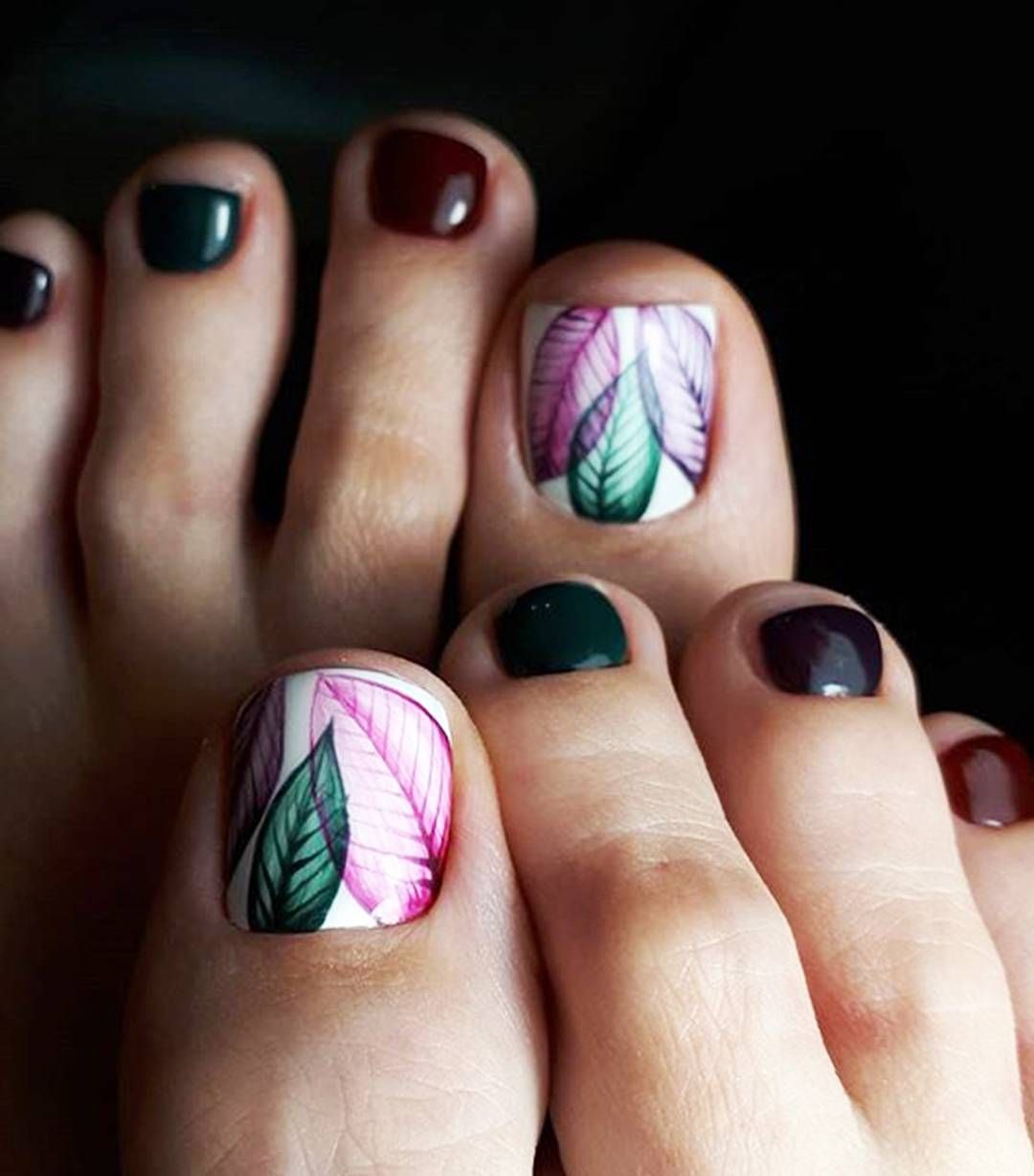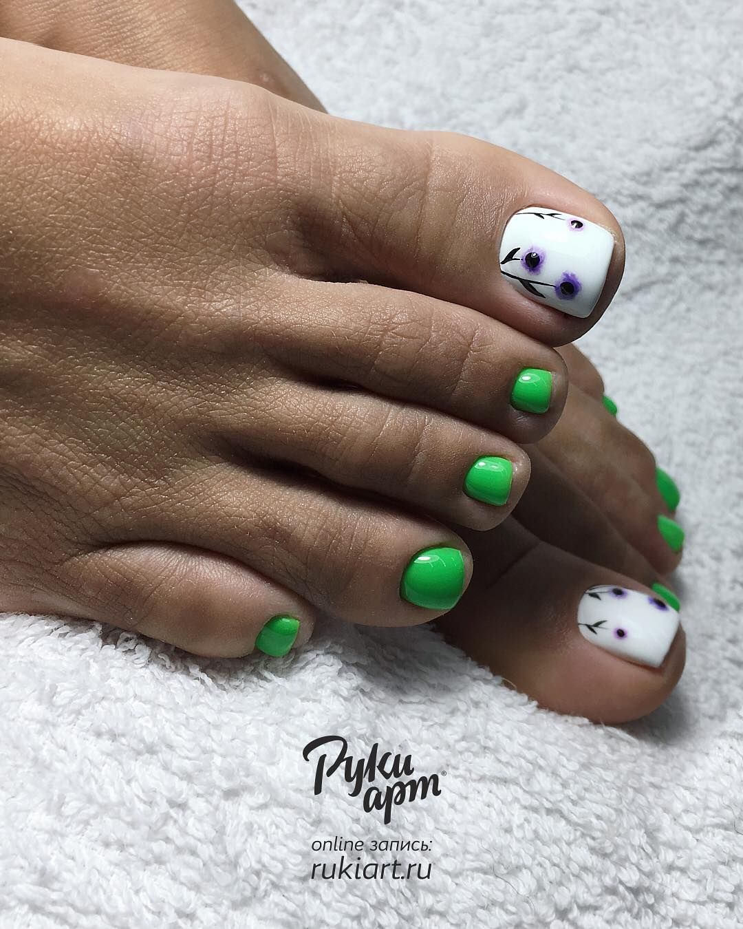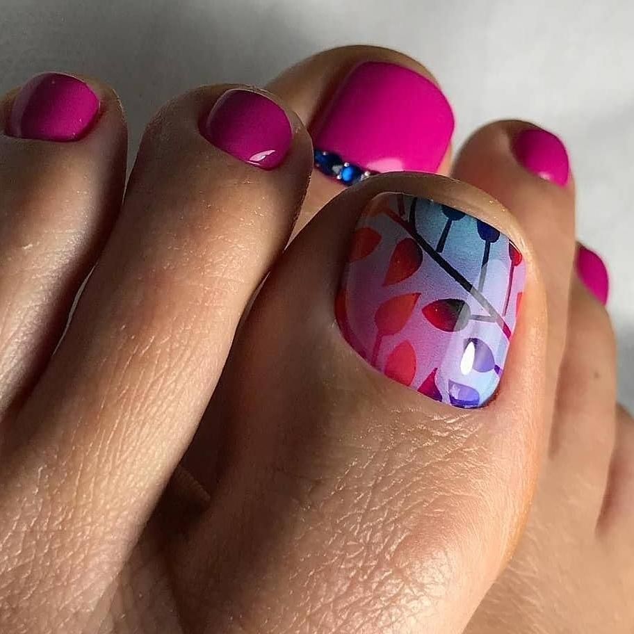 Педикюр с рисунком на большом пальце сможет разнообразить повседневность. Для подобного акцента в маникюре часто выбирается безымянный палец, когда как большой палец в педикюре — главное место для дизайна.
