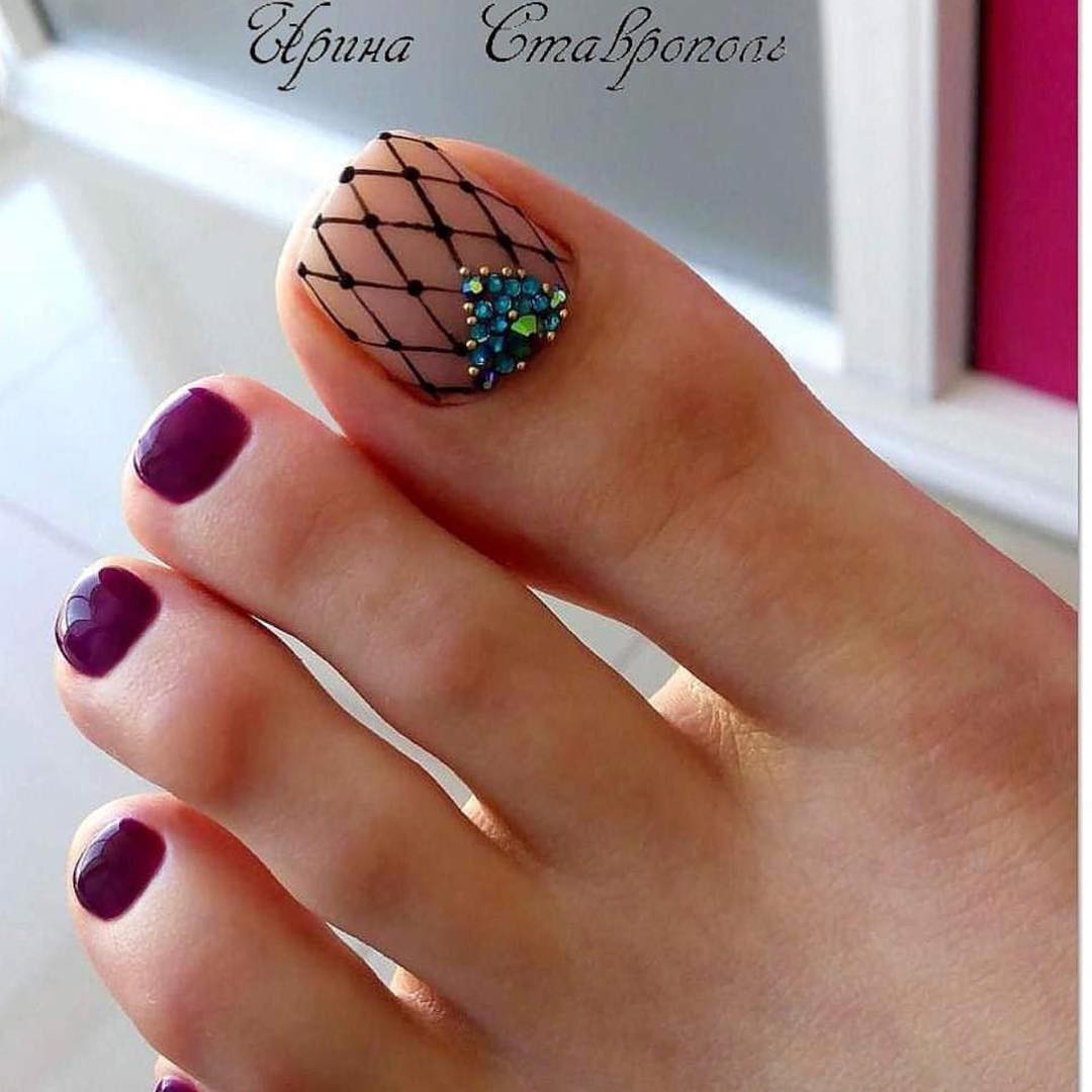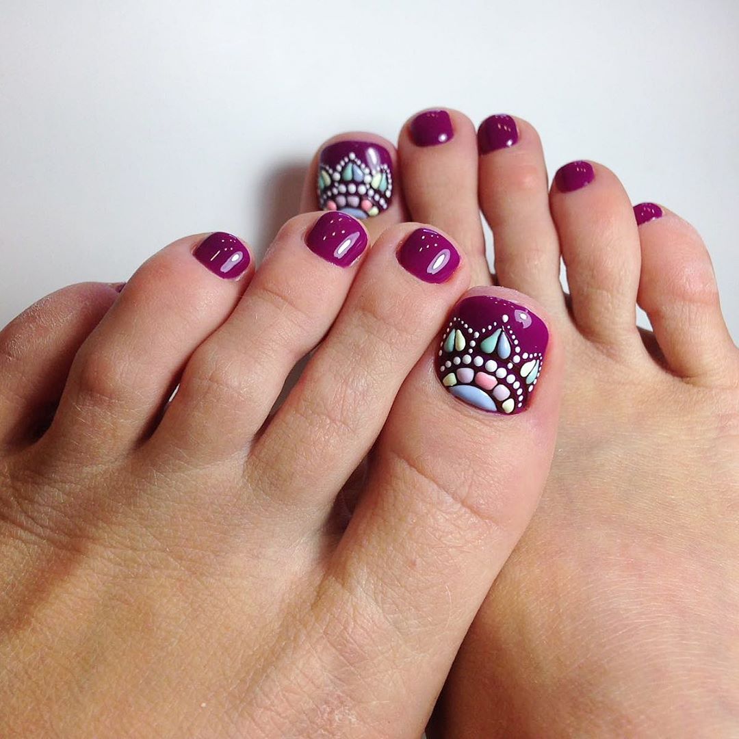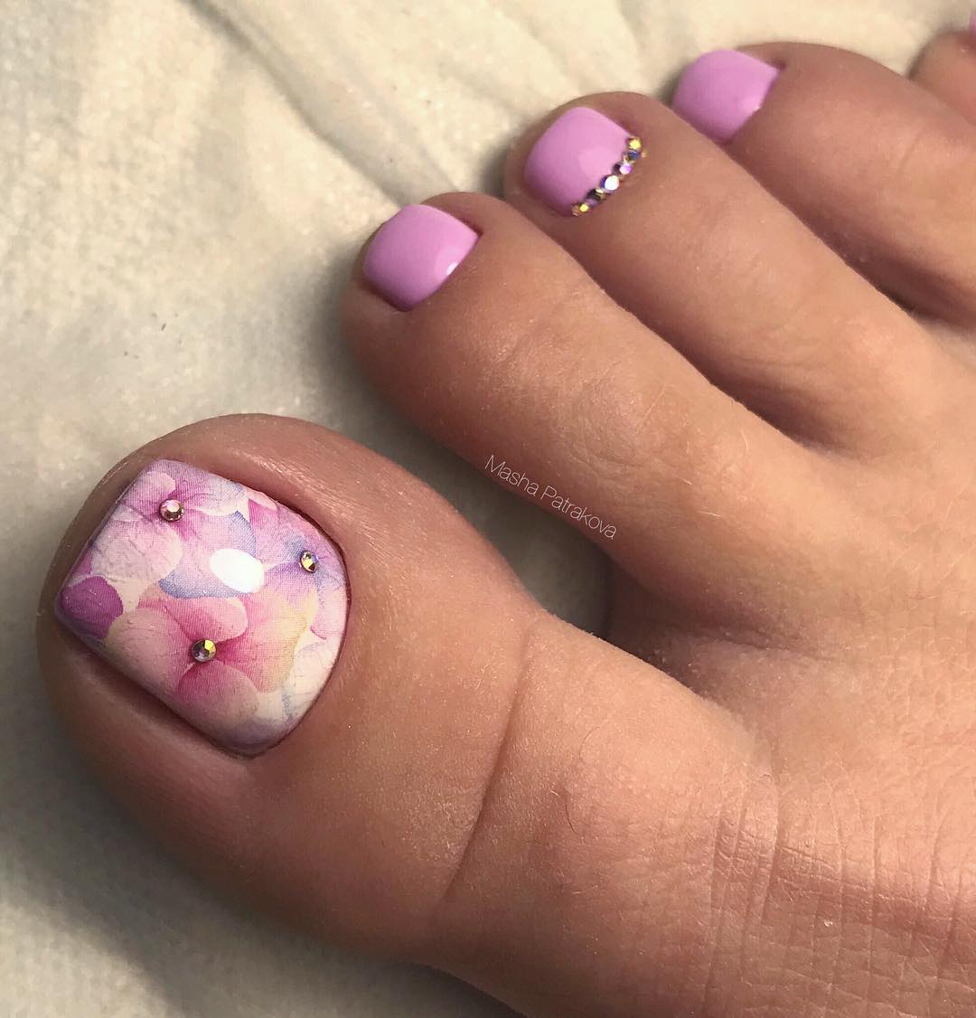 Педикюр с рисунком на большом пальце сможет разнообразить повседневность. Для подобного акцента в маникюре часто выбирается безымянный палец, когда как большой палец в педикюре — главное место для дизайна.