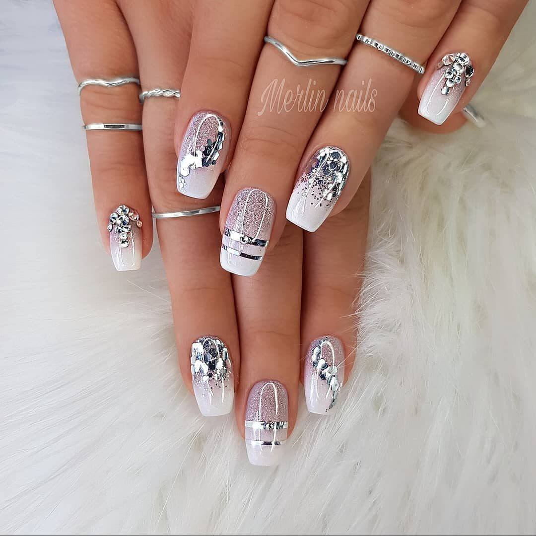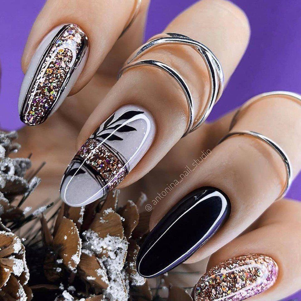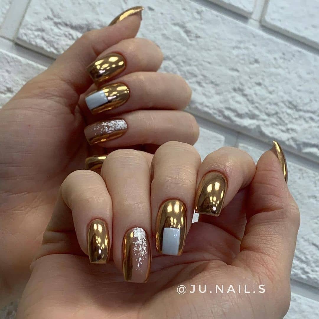 - серебряный или золотой глиттер – в итоге получится повседневный, нейтральный дизайн ногтей, который отлично впишется в ваши летние образы