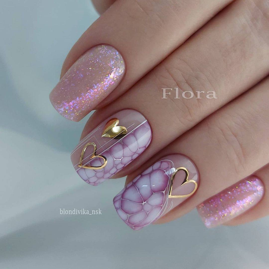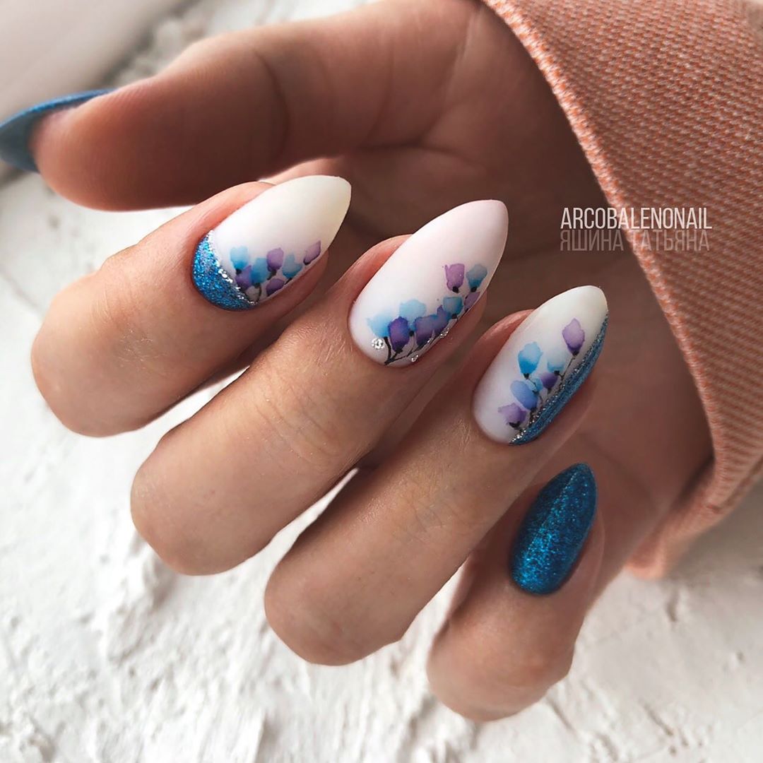 - Весной не хочется “перегружать” маникюр, поэтому рекомендуем ограничиться дизайном одного-двух пальцев на фоне однотонных остальных.