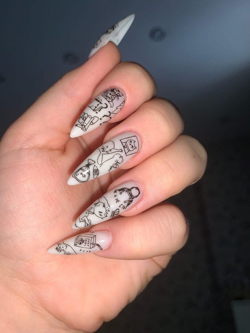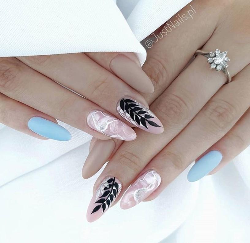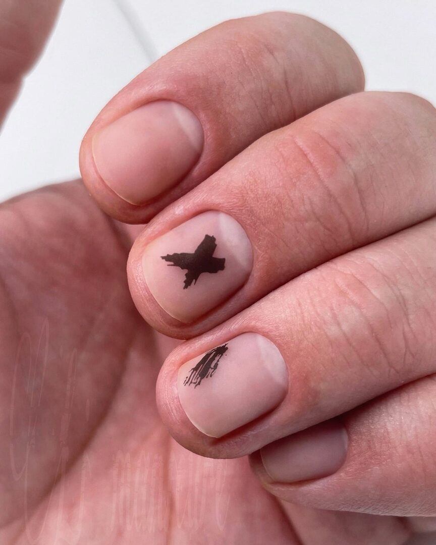 - Самый явный тренд нюдового маникюра 2022 для длинных, миндальных ногтей — рисунки и абстракции. Вовсю используем геометрию, животный принт.