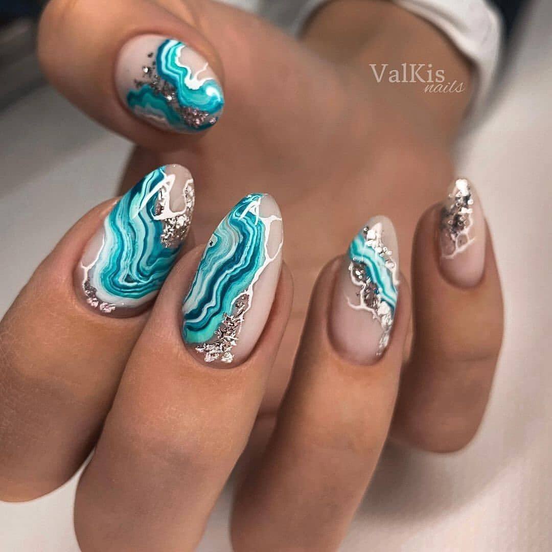 Абстрактные узоры на нюдовом маникюре будут в тренде в 2024 году. Этот стиль позволяет проявить творческую натуру и экспериментировать с различными формами, линиями и текстурами. Можете использовать разные техники, такие как мраморный эффект, водяные маникюры, а также комбинировать разные оттенки нюдовых лаков, чтобы создать уникальные абстрактные узоры на ногтях.