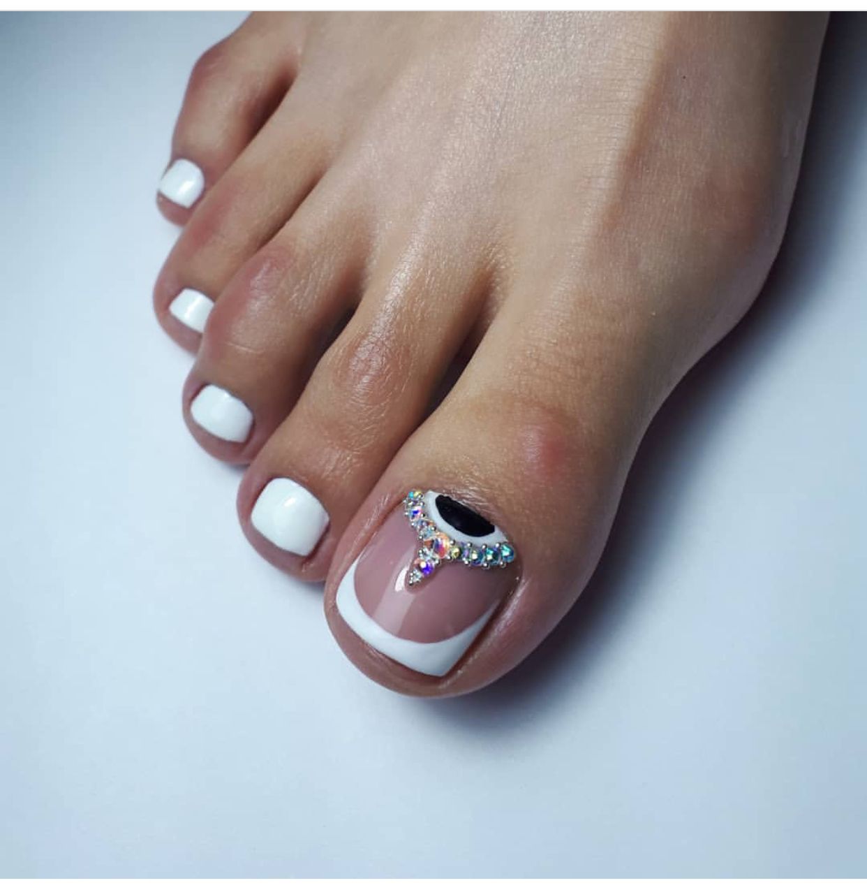 #5 Белый педикюр: лучшее решение для декора ногтей