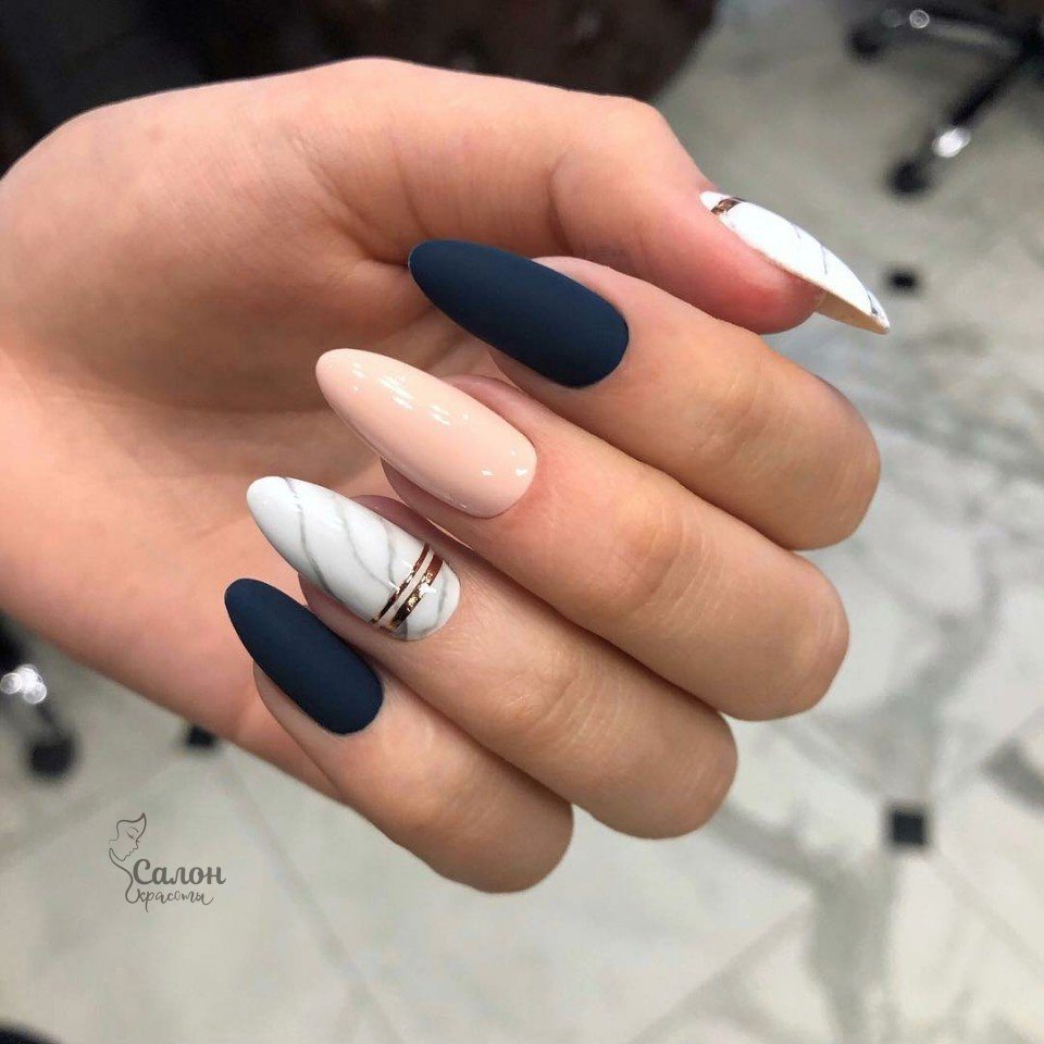 Другой тон обычно бывает более контрастным – черным, синим или зеленым. Это замечательный случай, когда необычные цвета для ногтей, такие как синий, выглядят уместно.