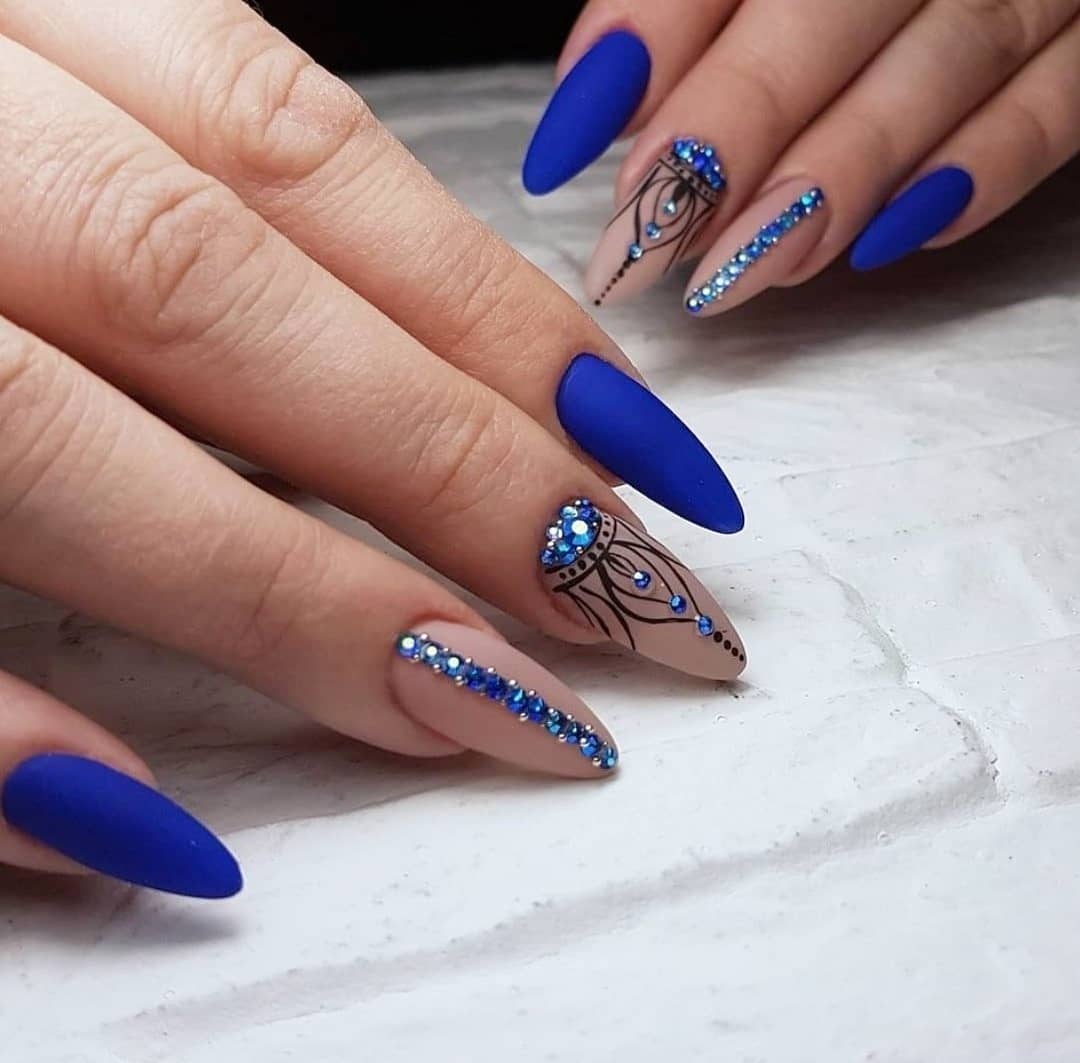 Несмотря на то, что на длинном маникюре всегда много места, где можно расположить сверкающие камушки, с этим видом дизайна стоит быть аккуратными.