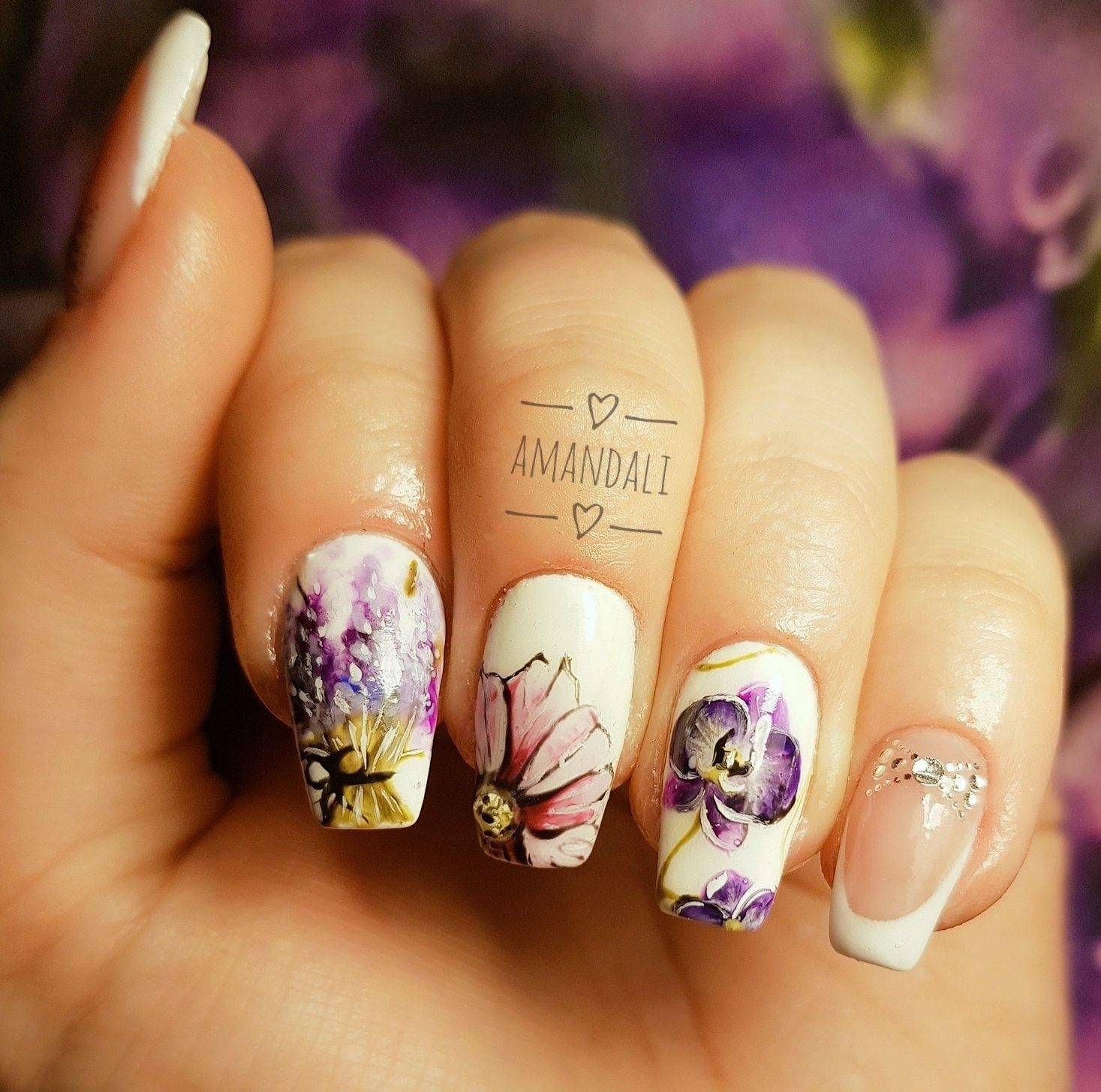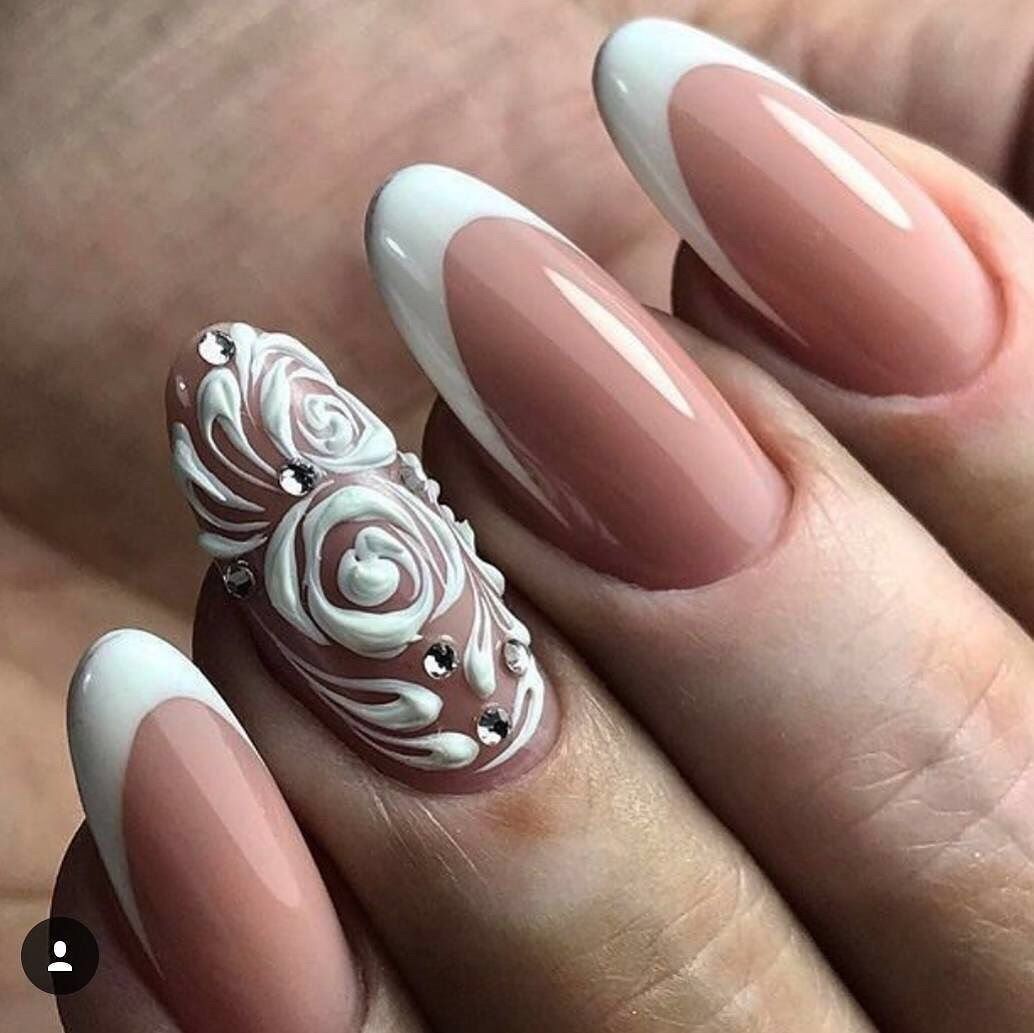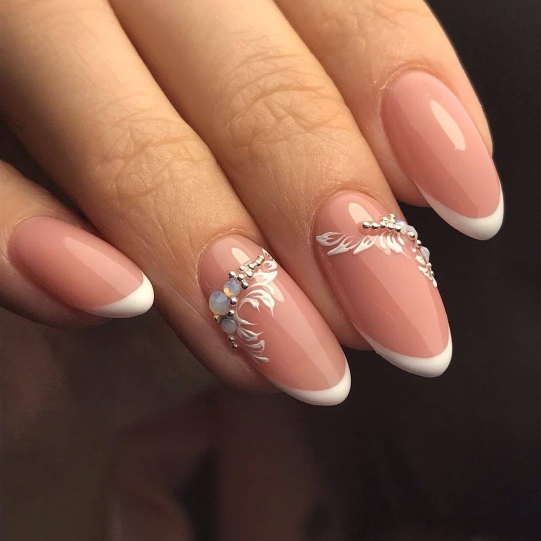 Что касается декора, то располагать его можно только в том случае, если на ноготках достаточно места. Это может быть кружевной декор, флористика, фольга, стразы и т.д.