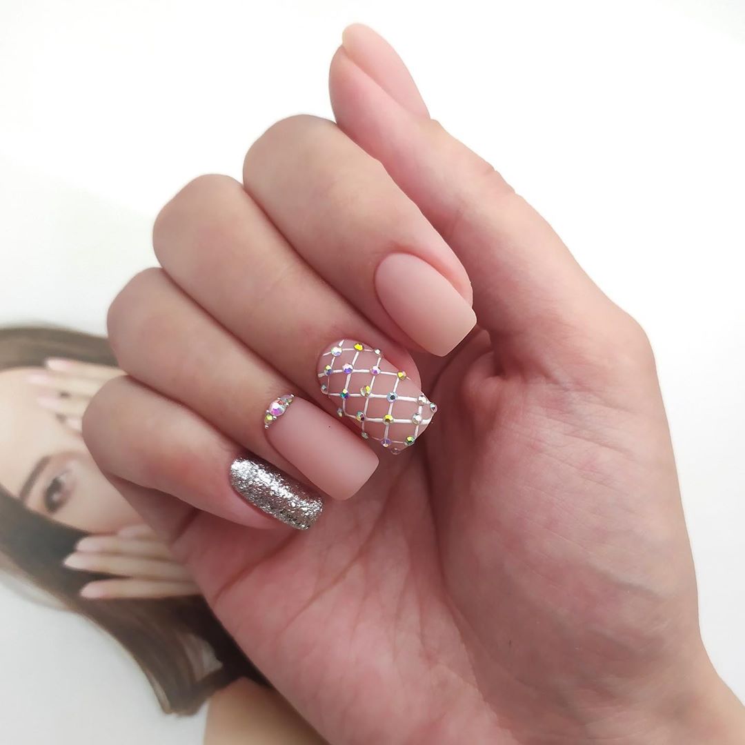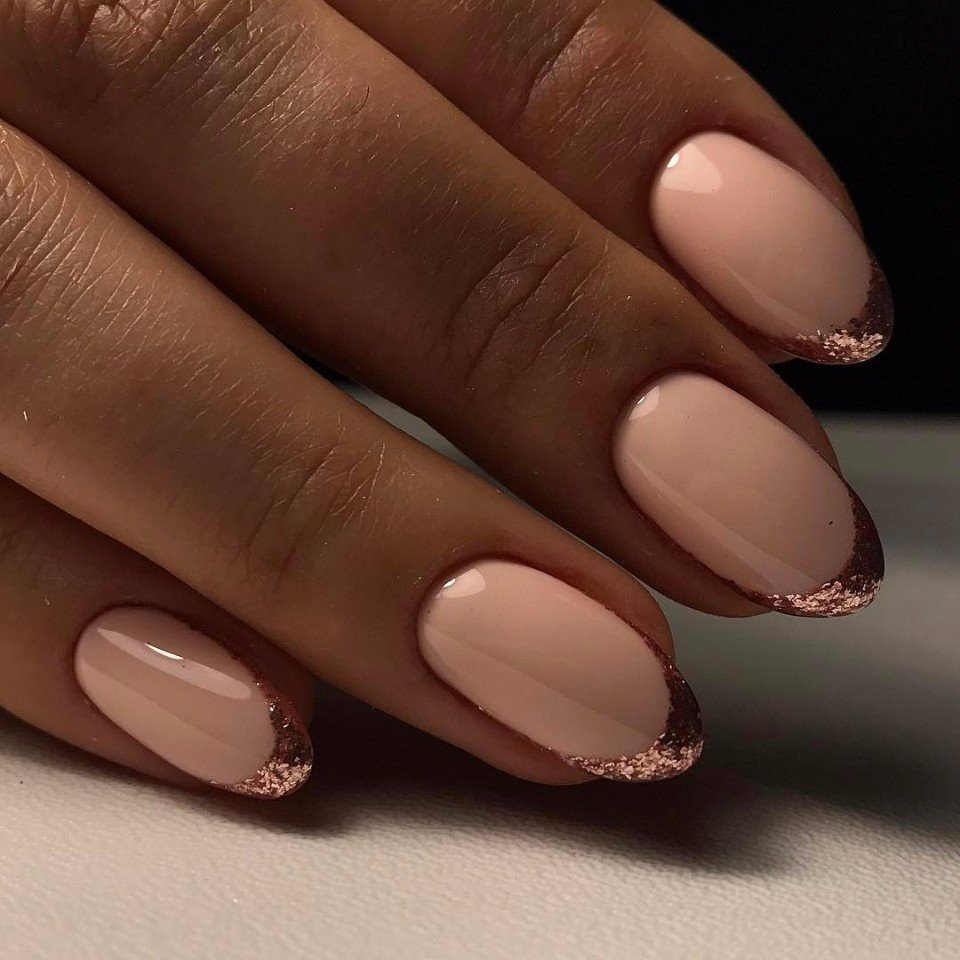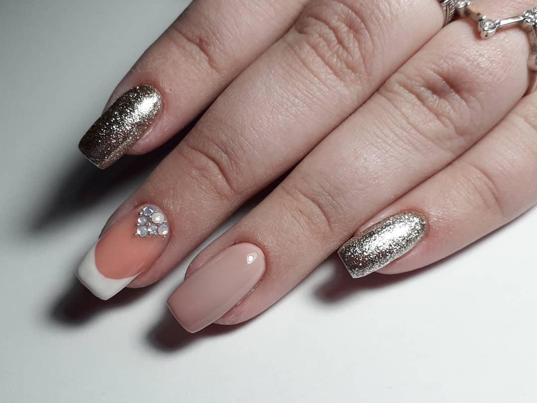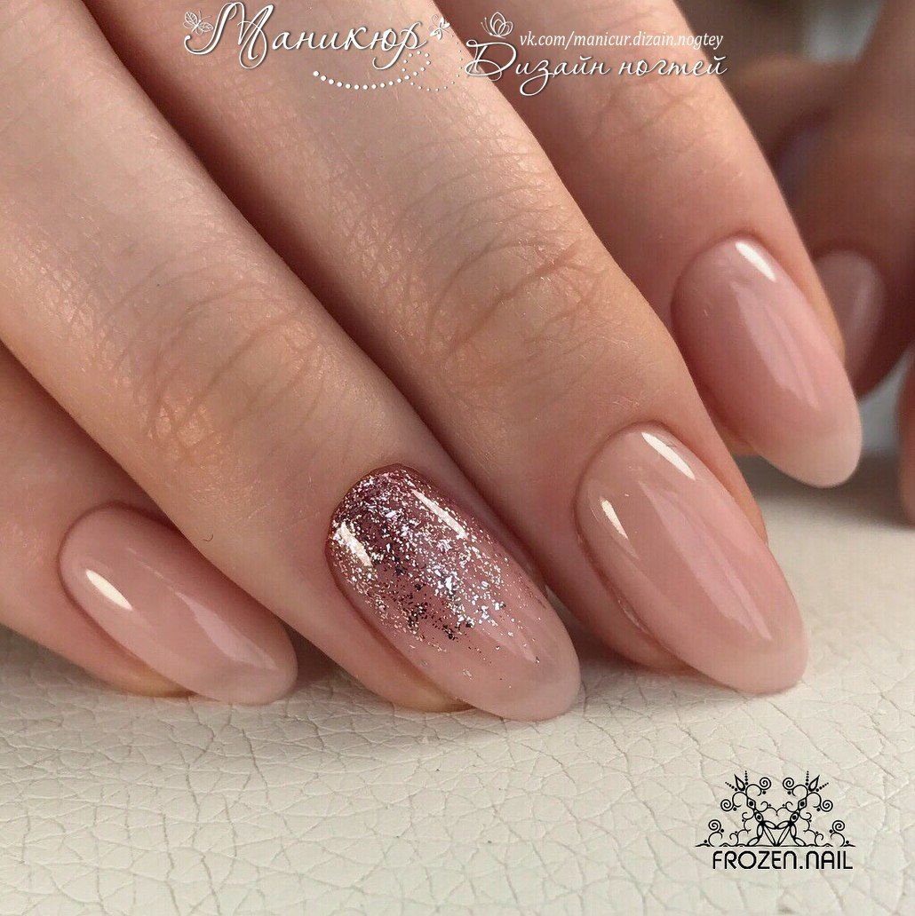 #3 Нюдовый маникюр на короткие ногти с блестками