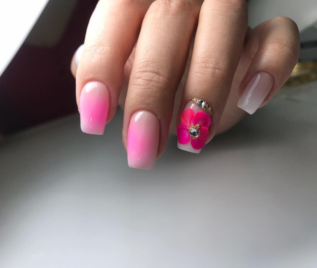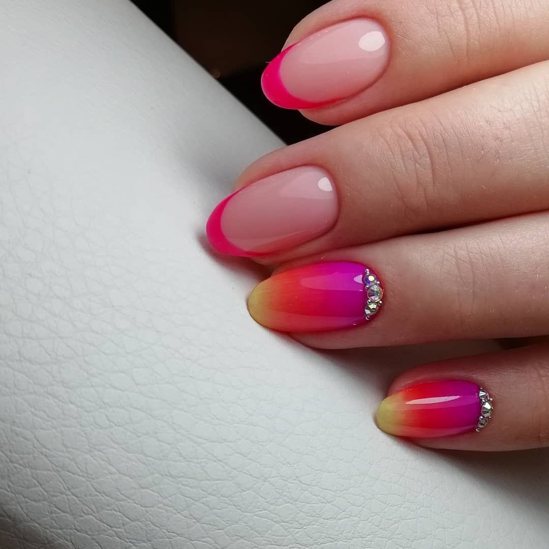 Техника омбре, она же градиентная, является современной интерпретацией френча именно в бежевой и розоватой гамме. Особенно привлекателен плавный переход внутри спектра – он символизирует умиротворение, спокойствие, уверенность, близость к природе. Очередность цветов можно выбрать на свой вкус – от более насыщенного к светлому и наоборот.