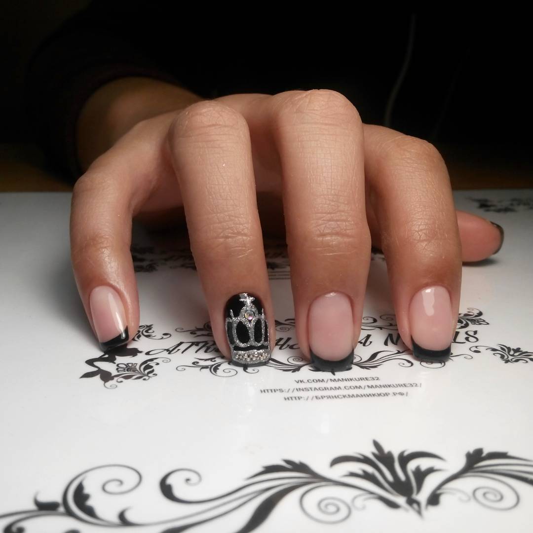 Для украшения коротких ногтей элементы должны быть более мелкими, чем для длинных, так они будут выглядеть более гармонично. Нарядно, но не вычурно, смотрится маникюр с черным кружевом, например французский или лунный. Кружевом могут быть украшены не все ногти, а только несколько избранных. Причем вы можете нанести на каждый ноготь свой узор, это тоже будет выглядеть интересно и оригинально. Это те варианты нейл-арта, которые всегда хорошо будут смотреться, если вы предпочитаете короткие ногти.