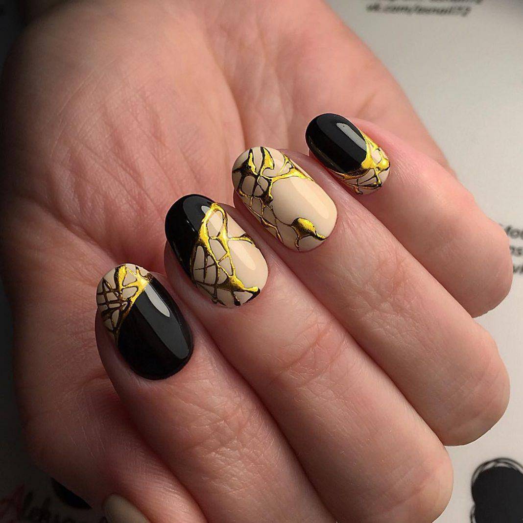 Гармоничное сочетание не требует добавления ярких деталей. Можно сделать акцент на безымянных и средних пальцах, сделать на кофейном фоне молочный геометрический узор. Для роскошного эффекта в дизайне можно добавить золотой глиттер или камифубуки.