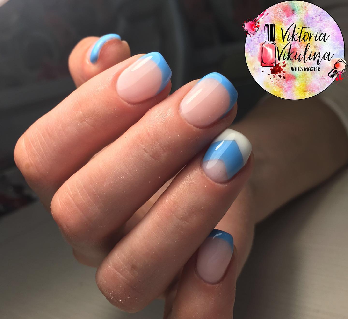 Голубой подходит для создания небесного и мраморного дизайна. Вязанный молочно-синий маникюр добавит образу нежности и уюта.