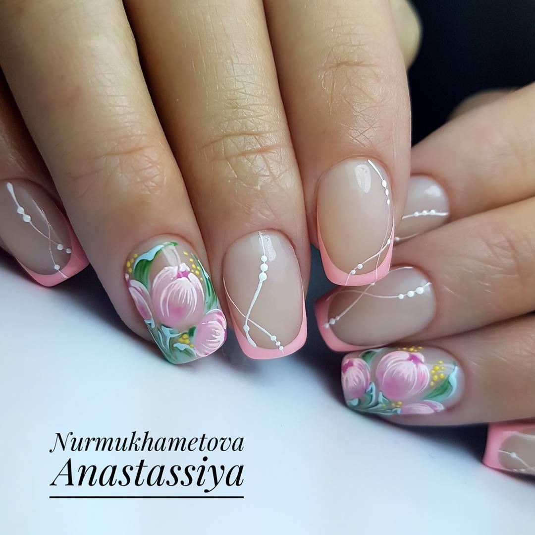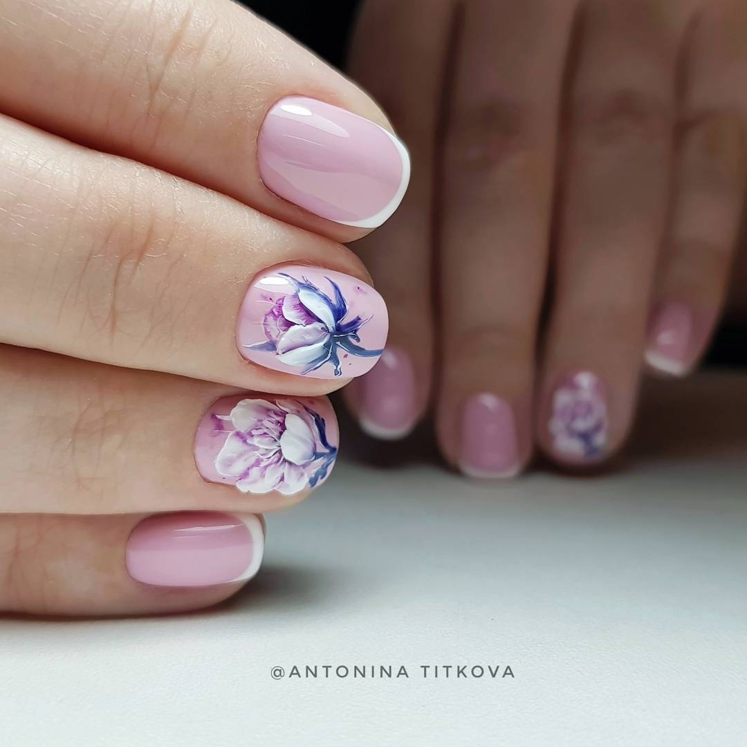 Для сочетания лучше выбрать светло-розовые оттенки. Палитра подходит для создания нежных образов, цветочного дизайна и омбре, акцента на безымянном пальце.