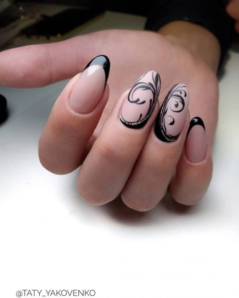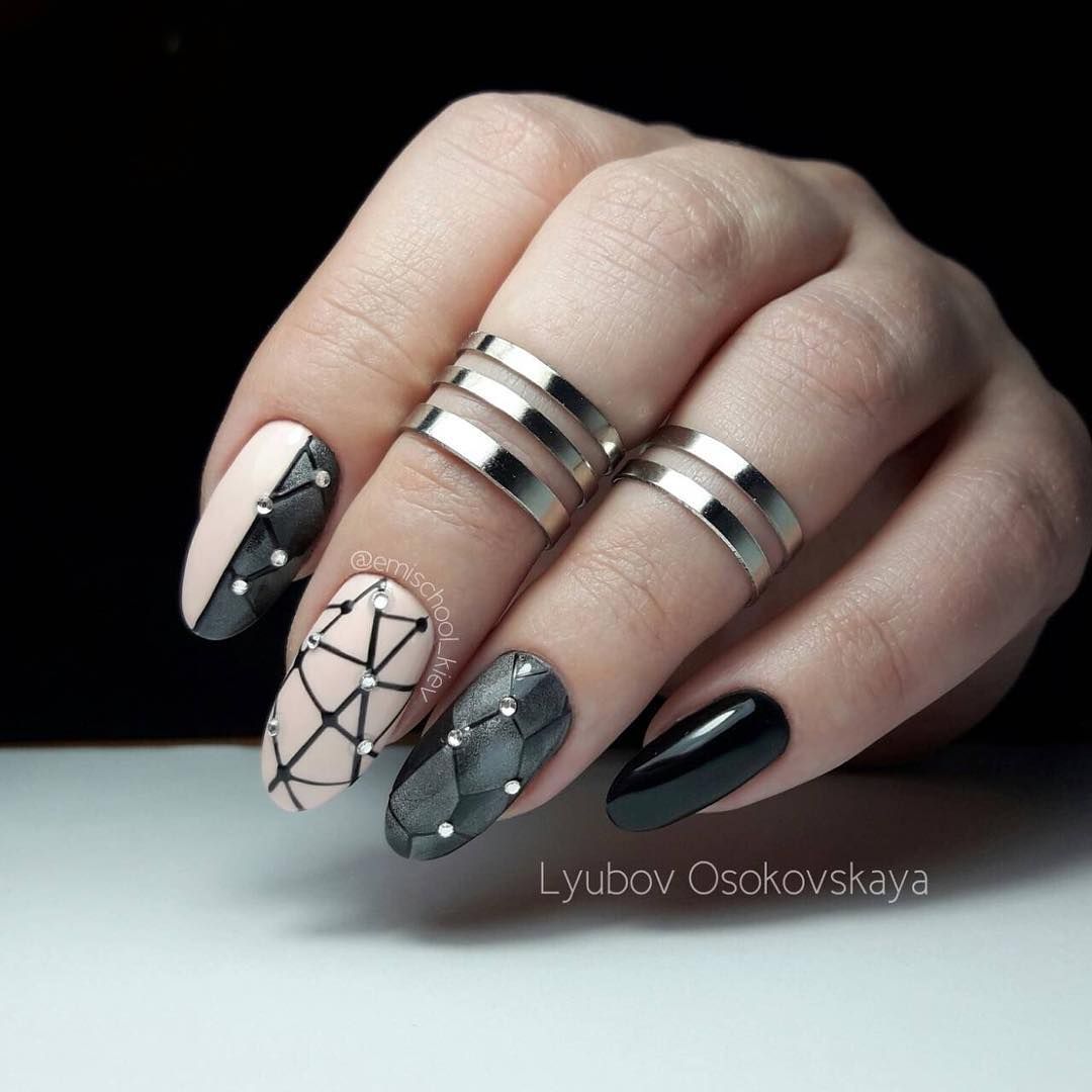 Черные сюжеты на молочных ногтях подчеркнут индивидуальность, и многое расскажут о характере и предпочтениях.